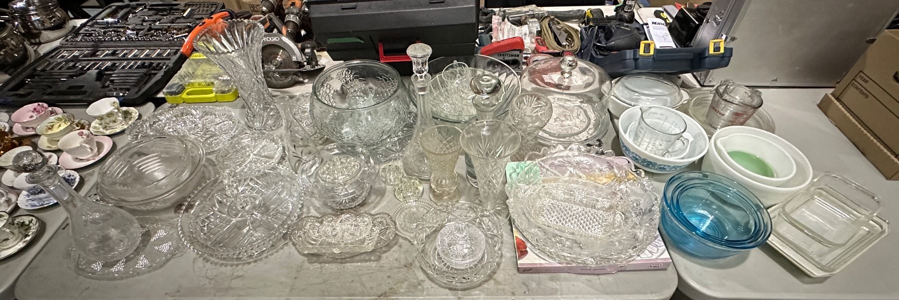 Table top of assorted glassware including - bowls, trays, vase, lids, etc... (approx 25 pieces)