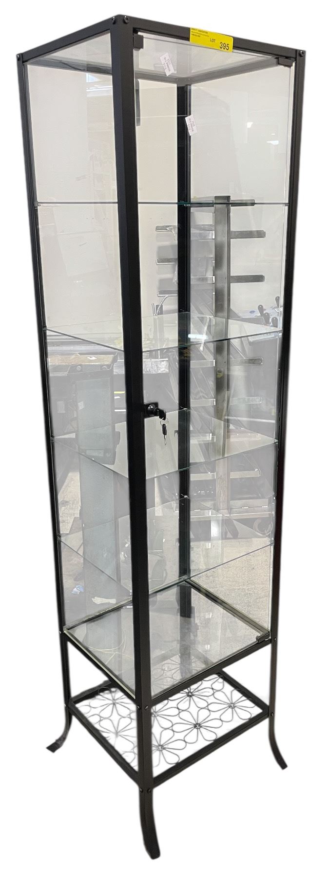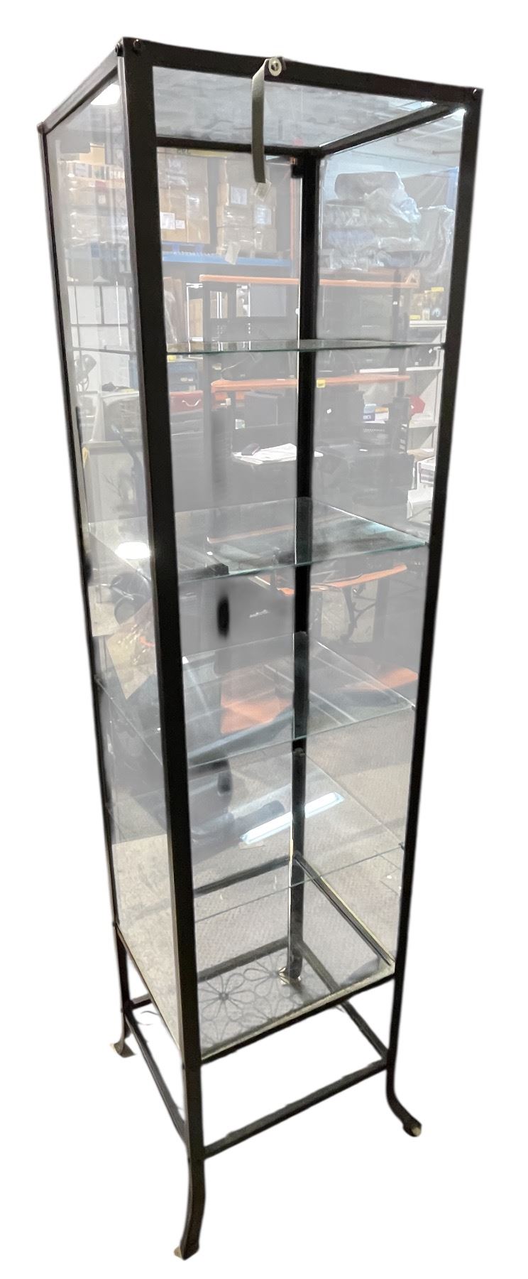 Tall Glass Display Cabinet with Black Metal Frame - Lockable with Adjustable Shelves