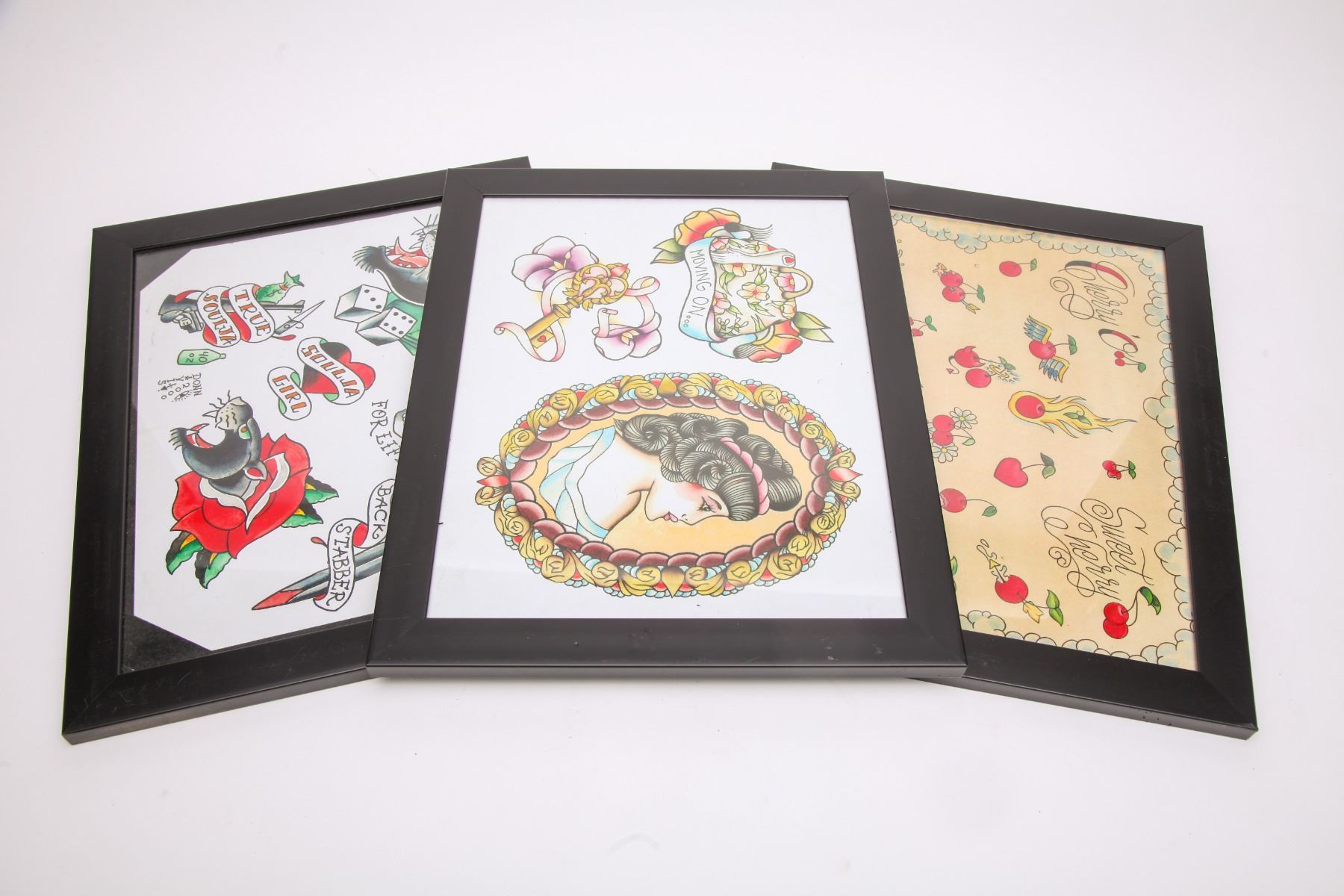 Tattoo supplies and framed flash art x65