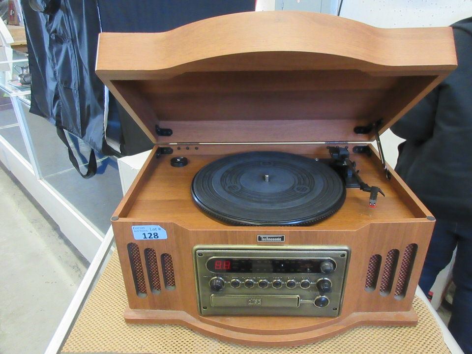 Built in turntable, CD player, cassette player and radio.