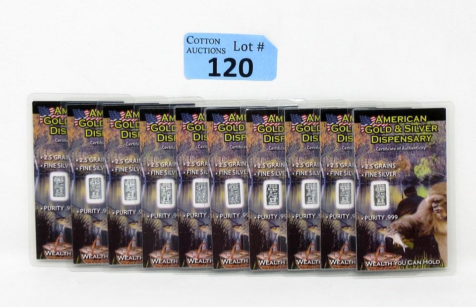 Each bar is 2.5 Grains. Total of 25.0 Grains. Minted in the USA. All individually sealed on certificate of authenticity cards. Tax exempt