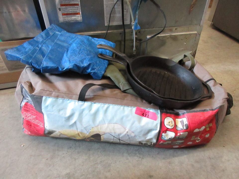 Tent Screen & 2 Cast Iron Frying Pans