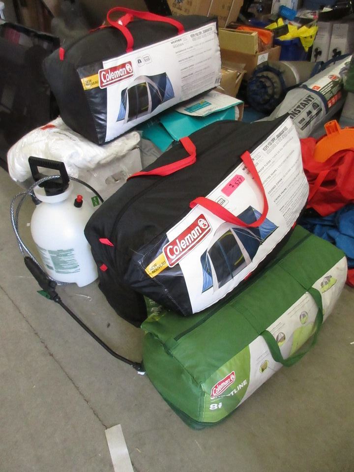 4 Tents, twin size foam mattress, queen plush blanket & back pack sprayer.