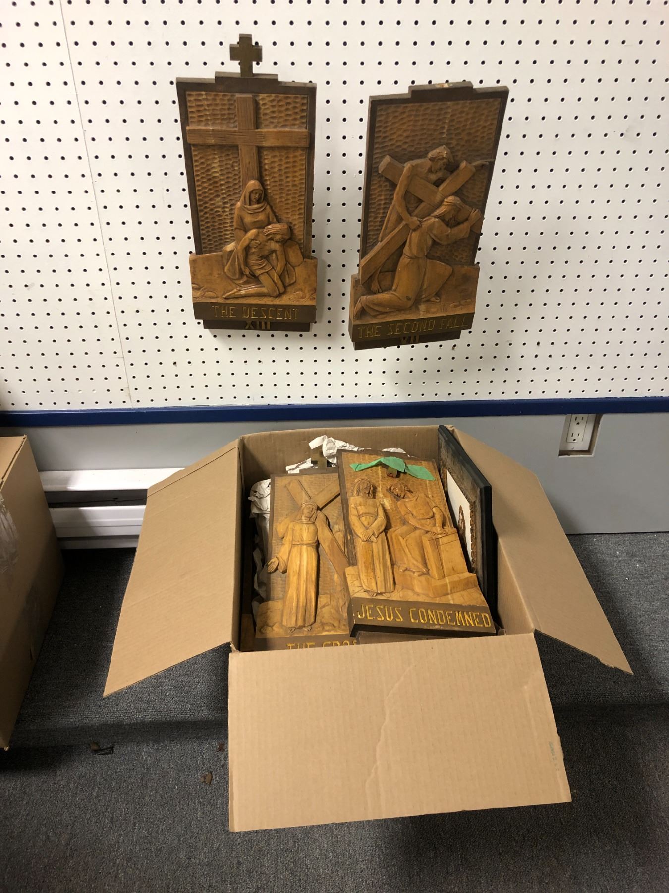 "The Horror Show" - Box full off assorted Christianity crosses wooden plaques