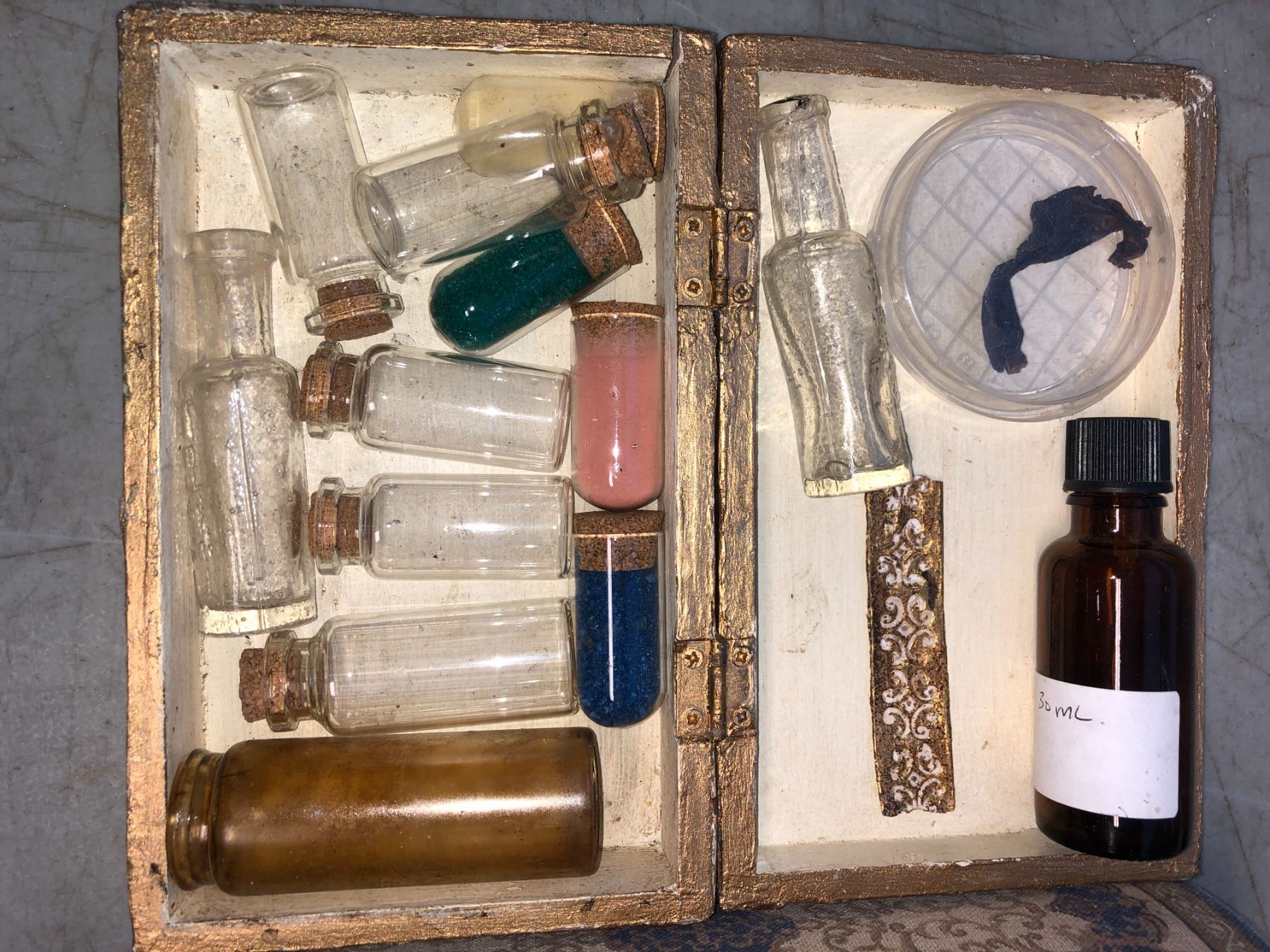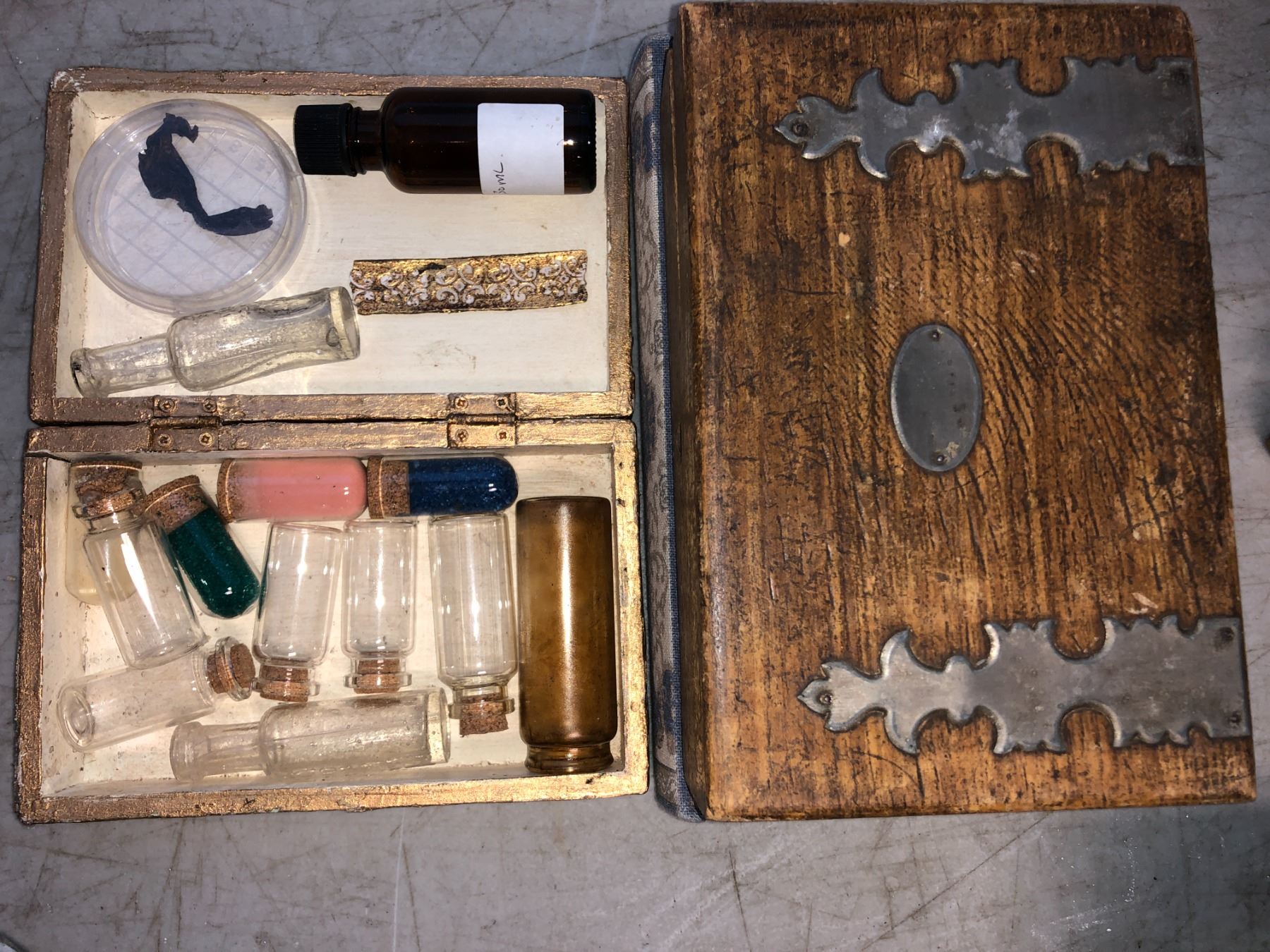 "The Magicians" - Group of 3 decorative wooden boxes & assorted vials