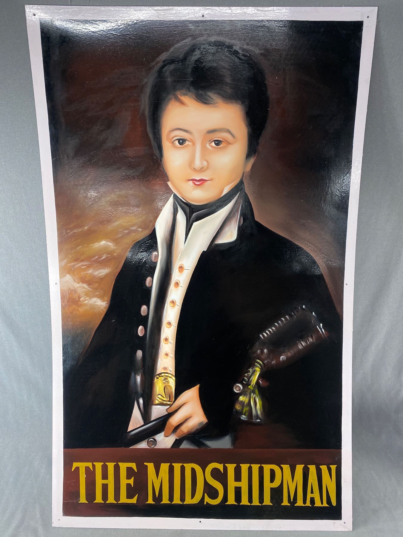 "The Midshipman"Hand Painted British Pub Sign On Metal. NO SHIPPING Approx. 30"W x 49"H