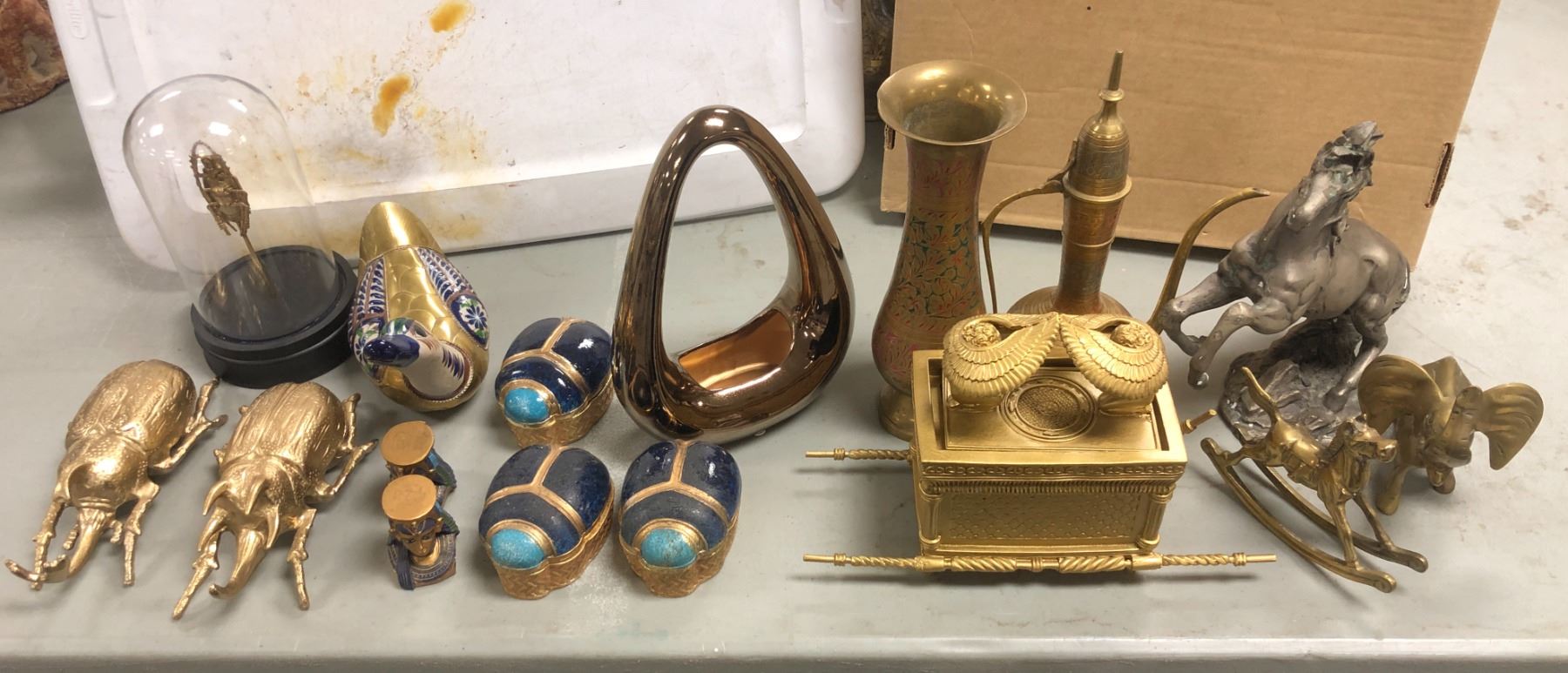 "The horror show" - Group of assorted brassware & decorative pcs - includes beetles / animal sculpture etc
