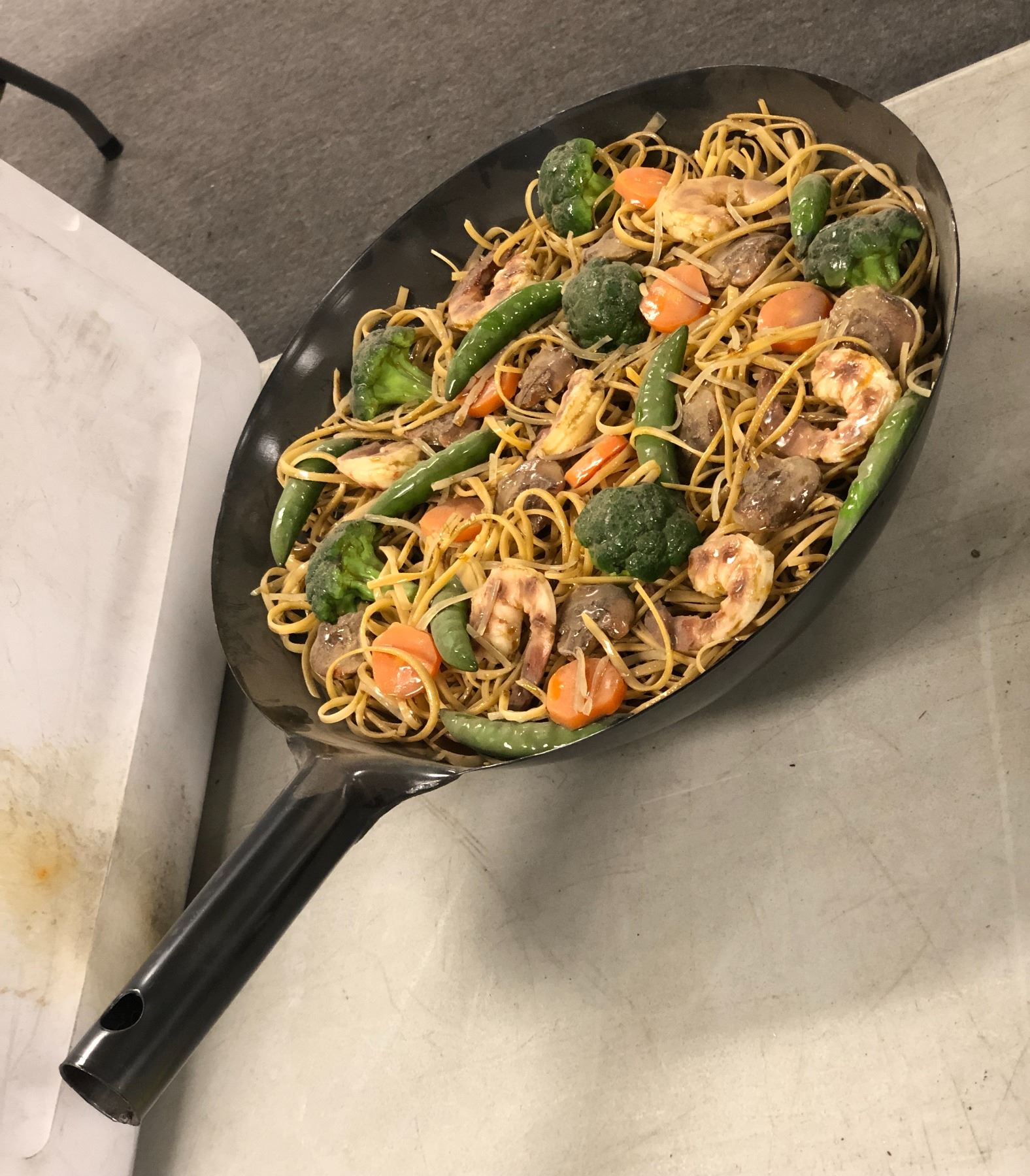 "The horror show" - Metal wok w/ shrimp noodles Prop