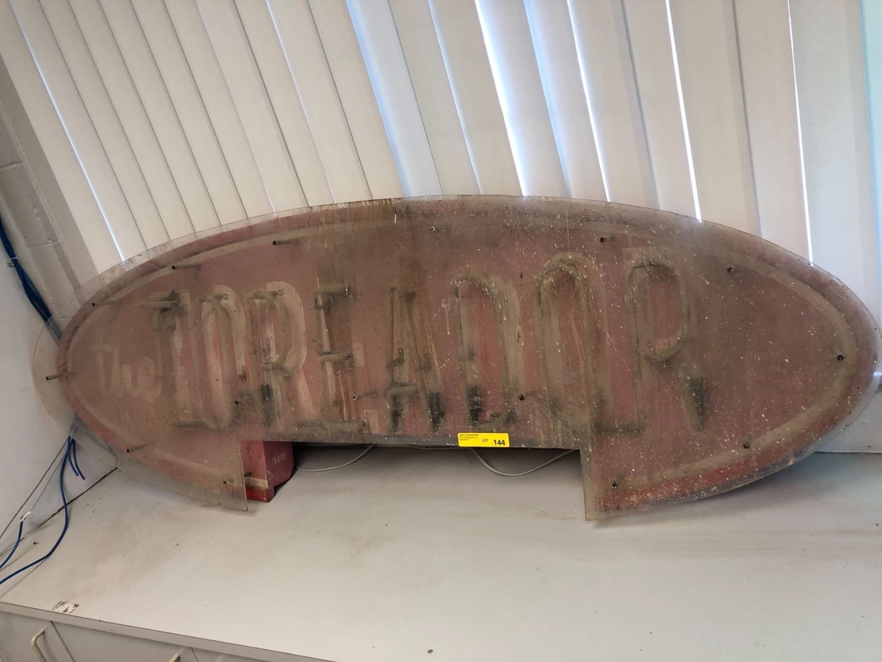 The toreador neon sign approx. 6ft x 2ft from the popular sci-fi tv series (plug has been cut off)