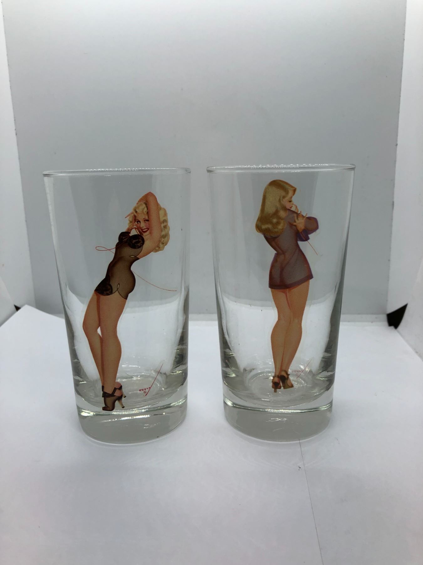 Thermal decals 1950s/1960s pin up girl glasses - cold water makes the clothing disappear