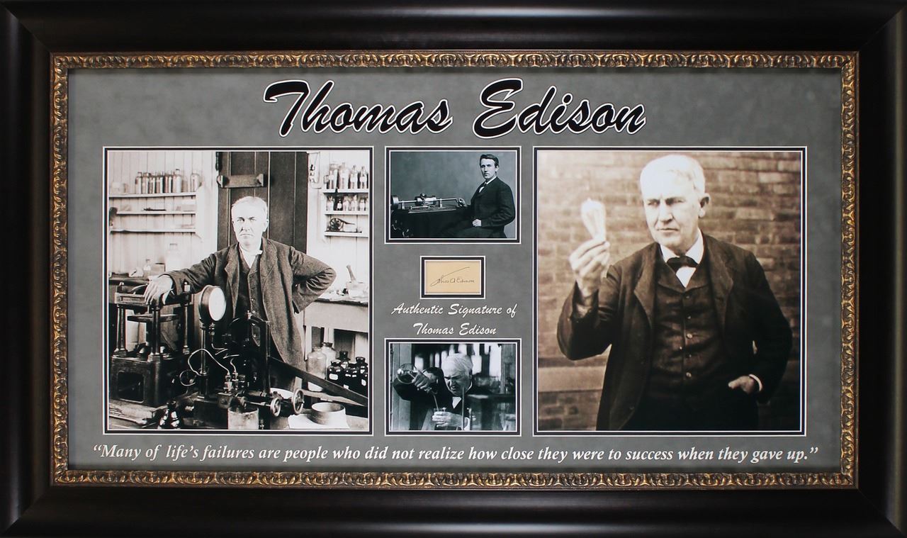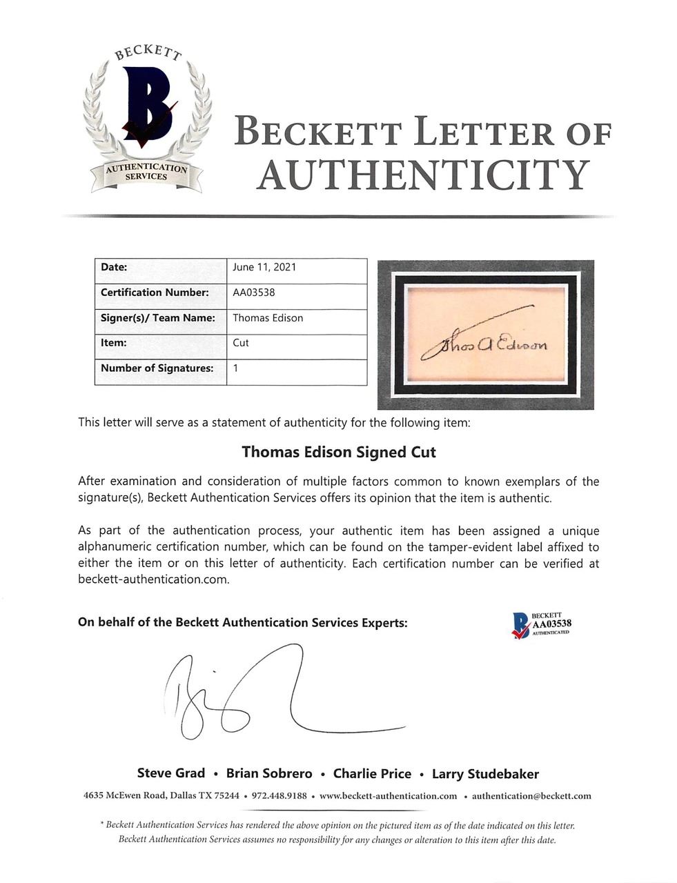 Thomas Edison Authentic Signed & Framed 1.75x2.75 Cut Signature BAS