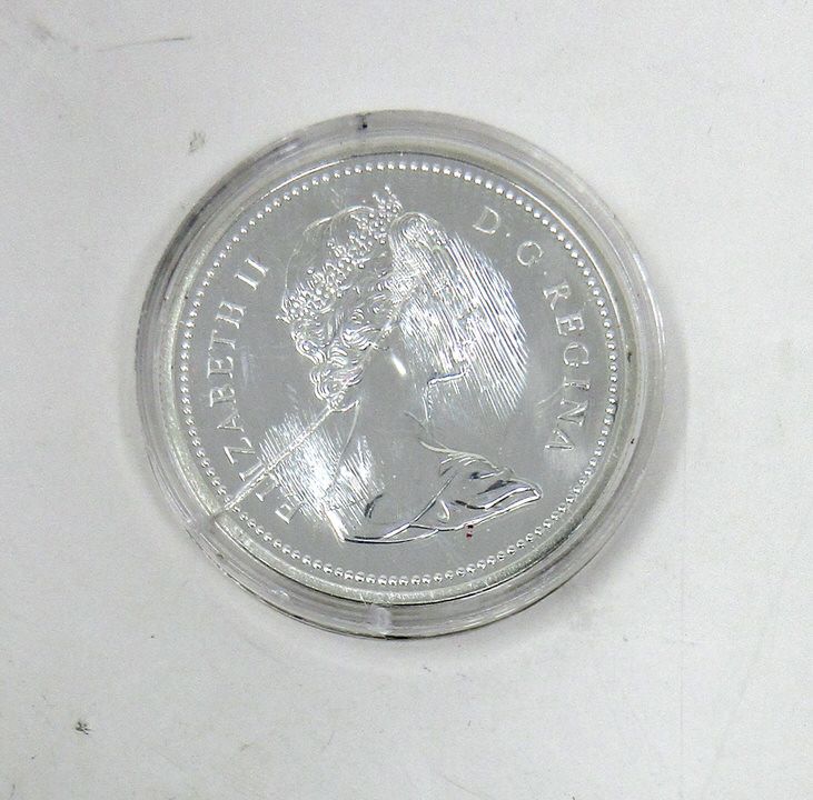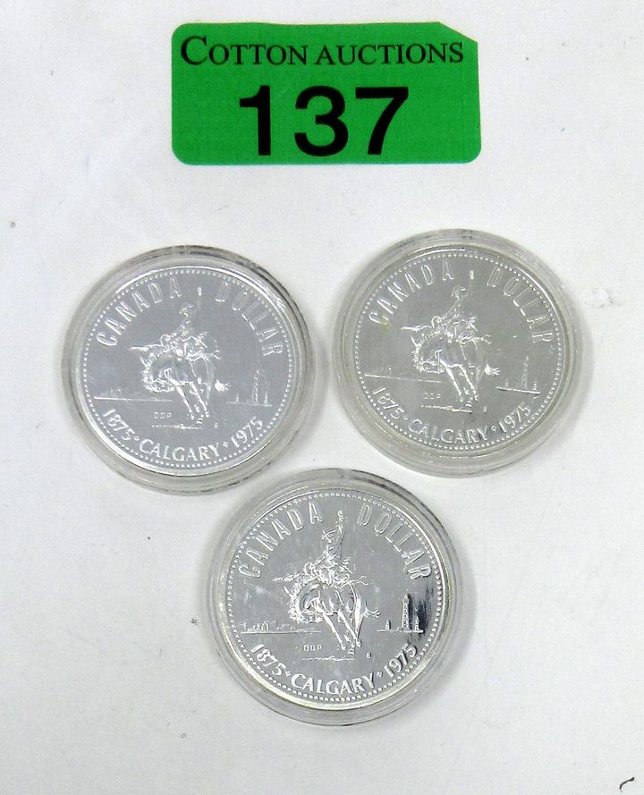 One 1977 Silver Jubilee commemorative coin with the Throne of the Senate image. Two 1976 Library of Parliament Centennial coins. Encapsulated.