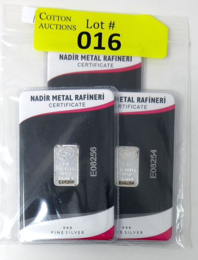 Total 15 Grams. Serial numbered. Mint sealed in assay cards. Tax exempt.