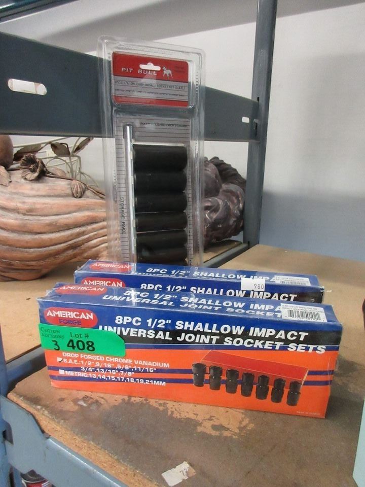 One 3/8" deep impact socket set & two 1/2" shallow impact universal joint socket sets