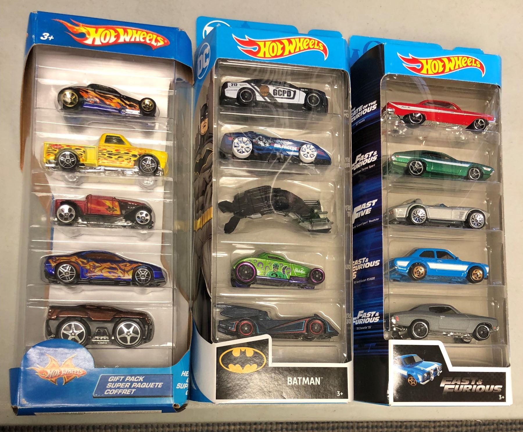 Three Hot Wheels 5 car packs - Gift Pack/ Batman & Fast & Furious