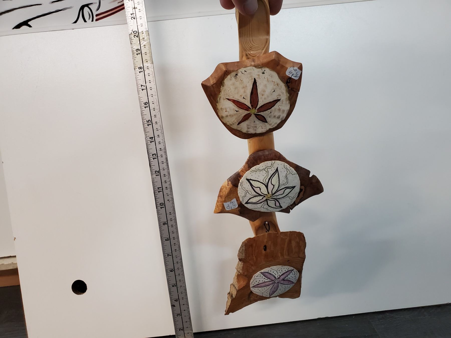 Trhee Painted Sand Dollars on Display Stick -- -- 17% Buyer Fee. Payment Processed through Live Auction World Sdaturday @ 11:15 ( Visa or Master Card ) pick up Saturday Before 3:00, or Tuesday 9:30 till 5:06
