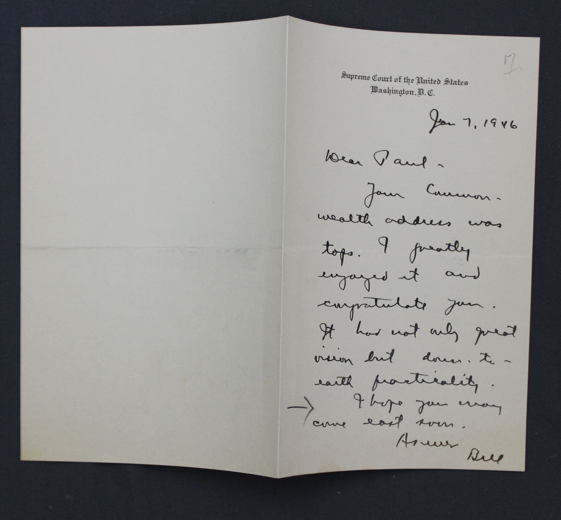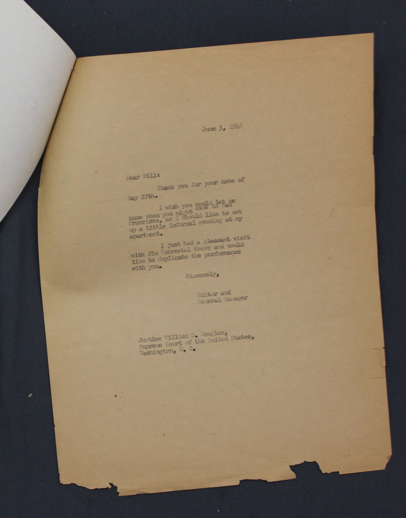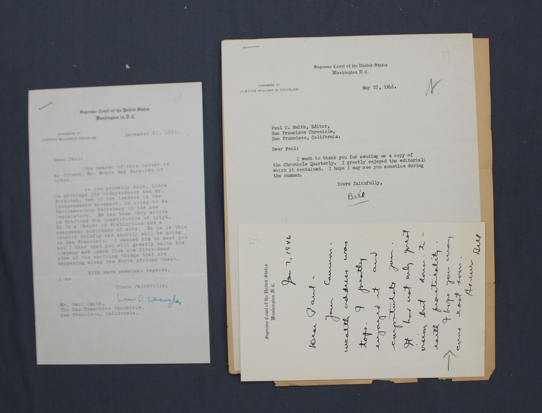 Three William O. Douglas Letters as Associate Justice of the Supreme Court; 1946-1951.