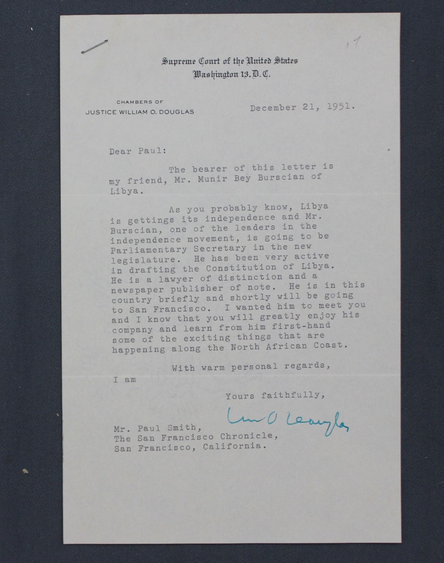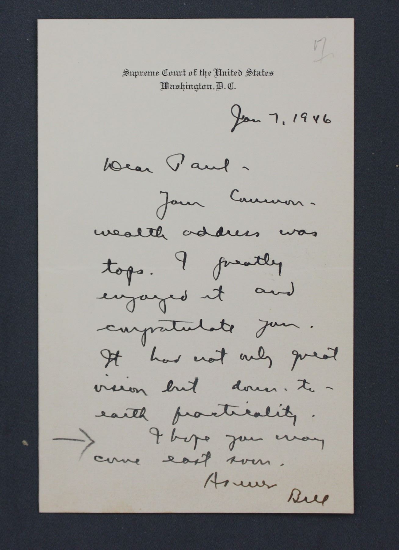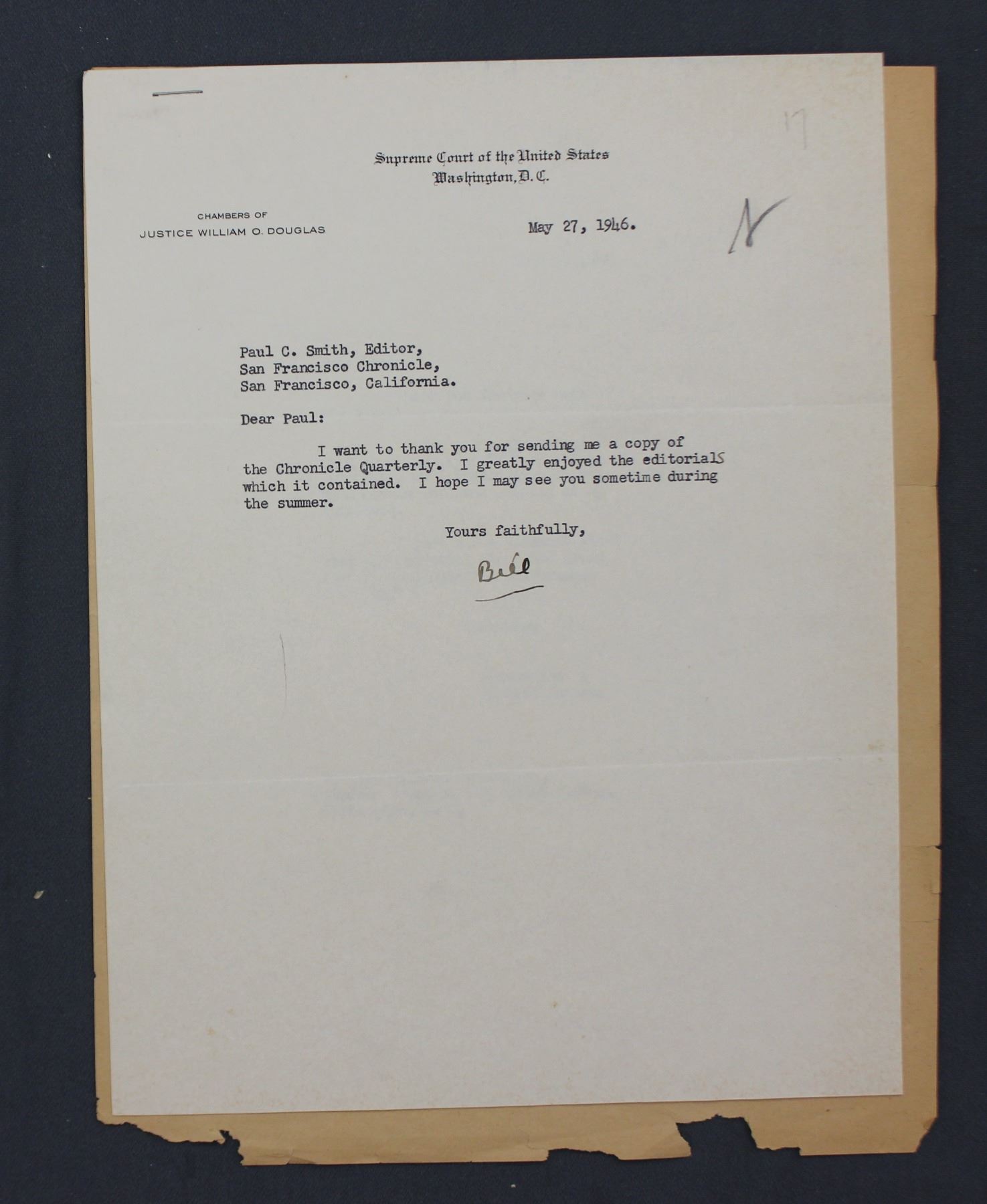 Three William O. Douglas Letters as Associate Justice of the Supreme Court; 1946-1951.