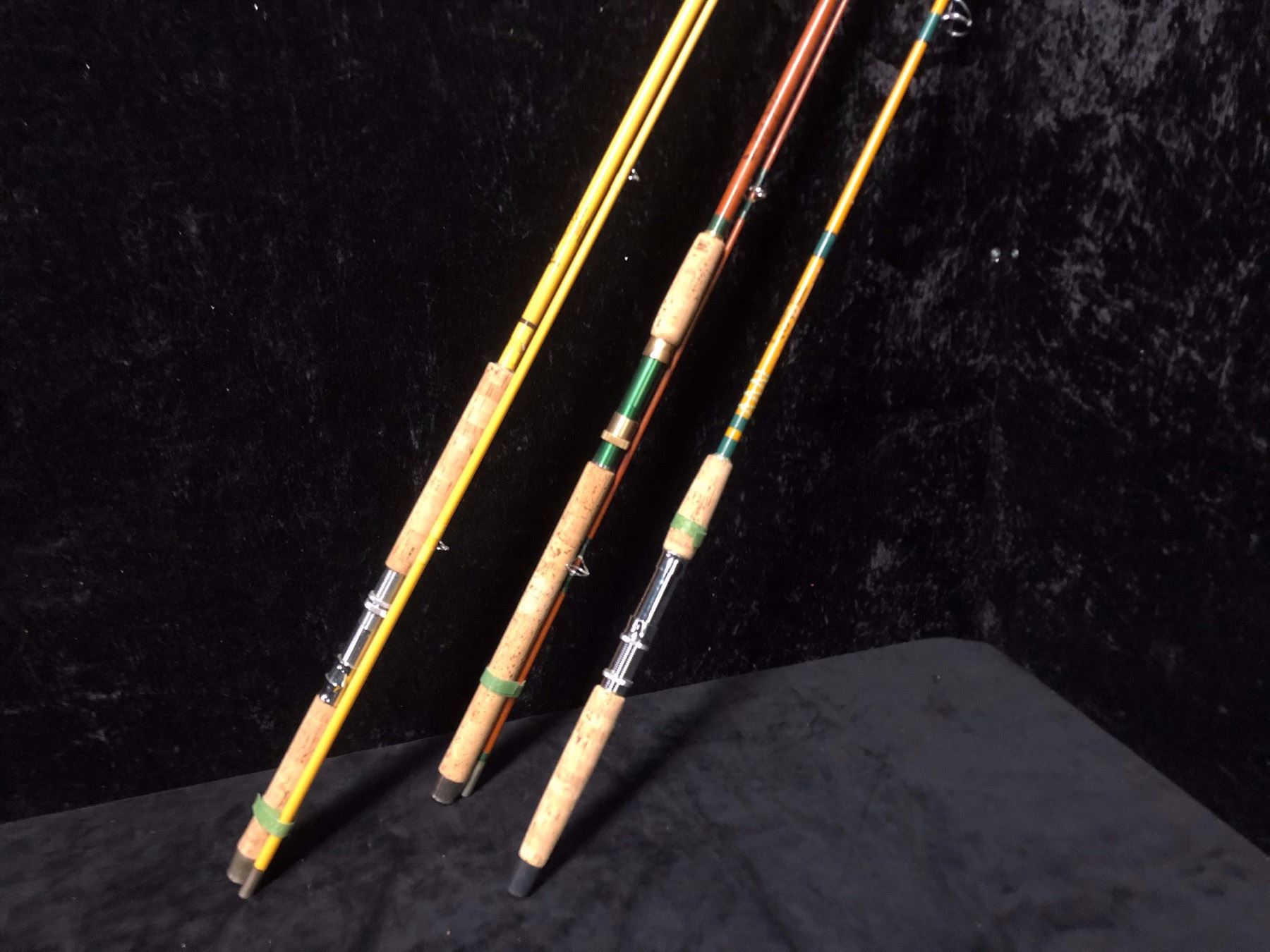 Three assorted spinning rods - Wright & McGill "North West Special"/ Wright & McGill "Powerlite"/ Trophy X-L Rainbow Spinning
