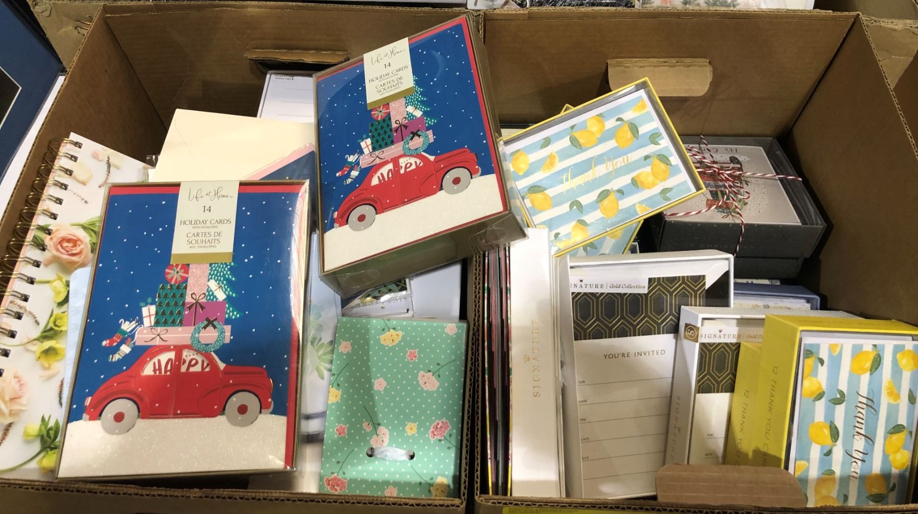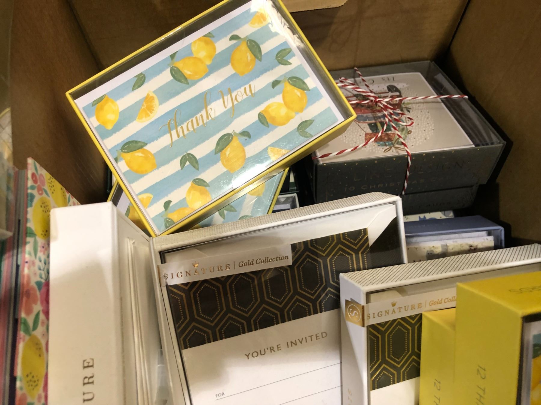 Three boxes of assorted new packages of Thank You cards/ Invitation cards/ Holiday cards etc. from the love show