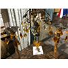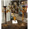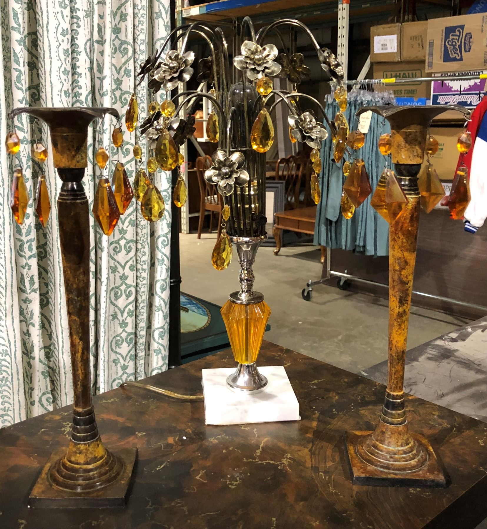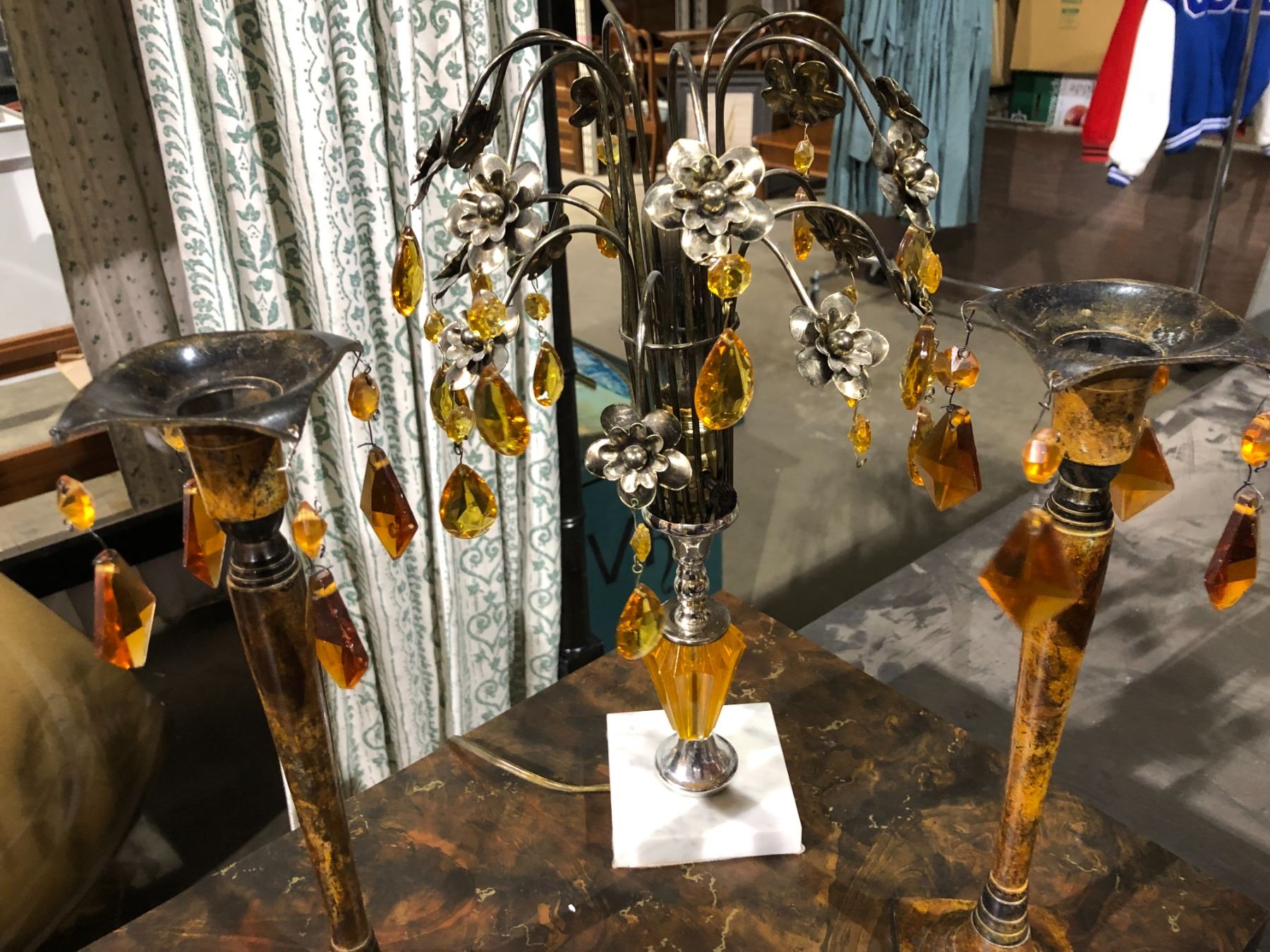 Three pc. amber color glass vintage table lamp & 2 candle stands