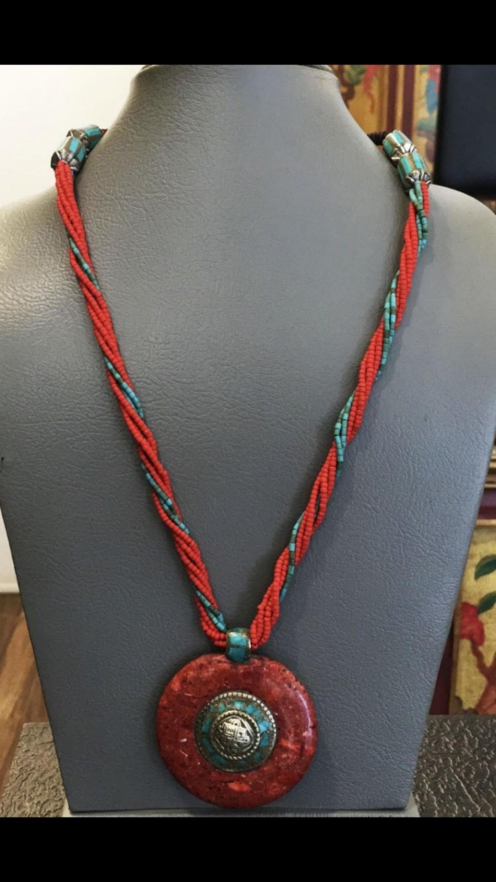 Tibet Natural Stone Hand Made Turquoise, Coral Necklace......;This elegant large Necklace was handcrafted in Tibet, the home of exquisite jewelry craftsmanship. It was skillfully made with large natural Turquoise, each in a deep Tibetan Silver setting. and balance the design perfectly. Turquoise is used virtually worldwide for jewelry making, and is highly prized for its brilliant colors, which vary from mine to mine. The distinctive webbing patterns and variations of color in the stones on this wonderful piece are typical of the natural Turquoise found throughout much of the Himalayan region, where Turquoise has been used in jewelry-making since centuries.”””Note- All stones in this necklace are Natural.....Guranteed....Vintage look but necklace is brand new.(Handcrafted & made in Tibet)