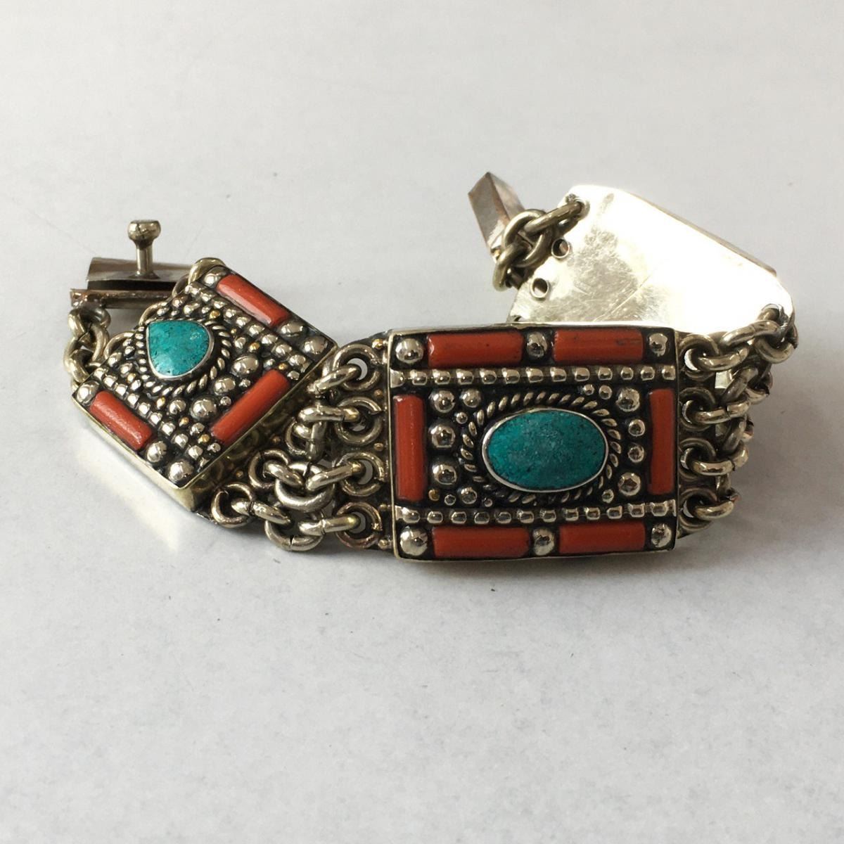 Tibet Hand Made Turquoise & Coral Bracelet
