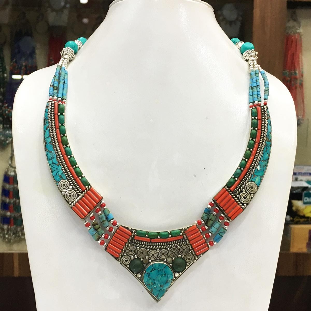 Tibet Natural Stone Tribal Queen Royal Necklace