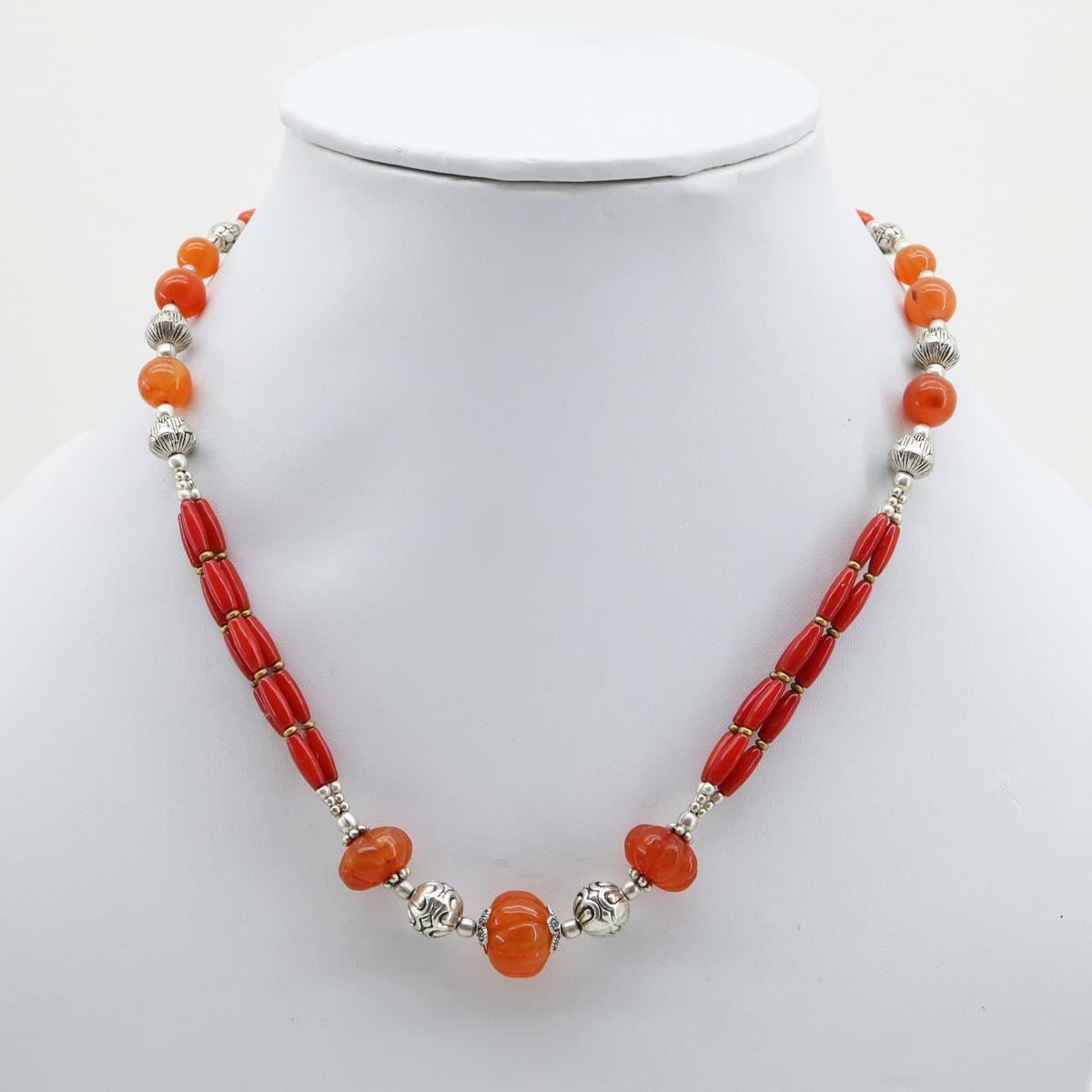 Tibet Natural Stone Hand Made coral Necklace.......This elegant large Necklace was handcrafted in Tibet, the home of exquisite jewelry craftsmanship. The distinctive webbing patterns and variations of color in the stones on this wonderful piece are typical of the natural ..Vintage look but necklace is brand new.Note- (Handcrafted/Handmade in Tibet)