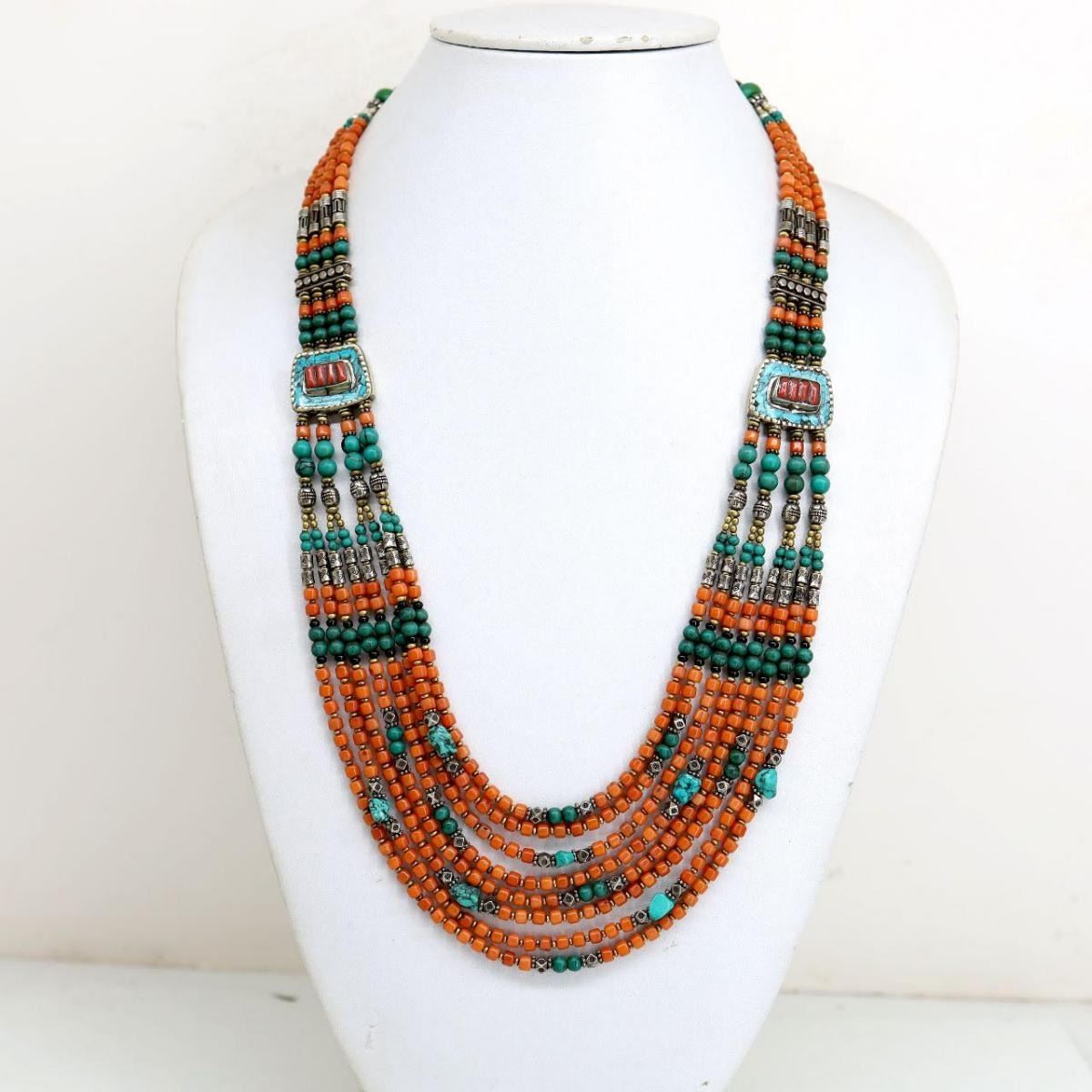 This elegant large Necklace was handcrafted in Tibet, the home of exquisite jewelry craftsmanship. It was skillfully made with large natural Turquoise, each in a deep Tibetan Silver setting. and balance the design perfectly. Turquoise is used virtually worldwide for jewelry making, and is highly prized for its brilliant colors, which vary from mine to mine. The distinctive webbing patterns and variations of color in the stones on this wonderful piece are typical of the natural Turquoise found throughout much of the Himalayan region, where Turquoise has been used in jewelry-making since centuries.All stones in this necklace are Natural.....Guaranteed....Vintage look but necklace is brand new.Note- (Handcrafted/Handmade in Tibet)