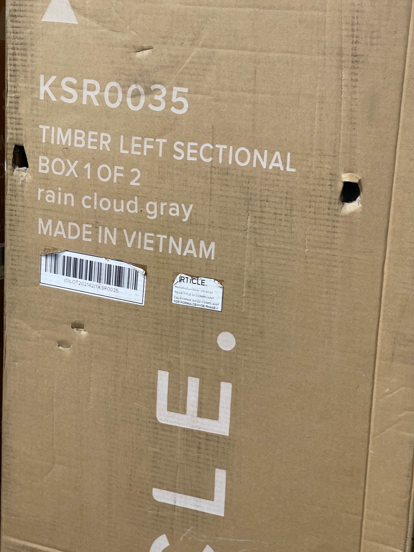 Timber Left Part of Sectional - Rain Cloud Grey