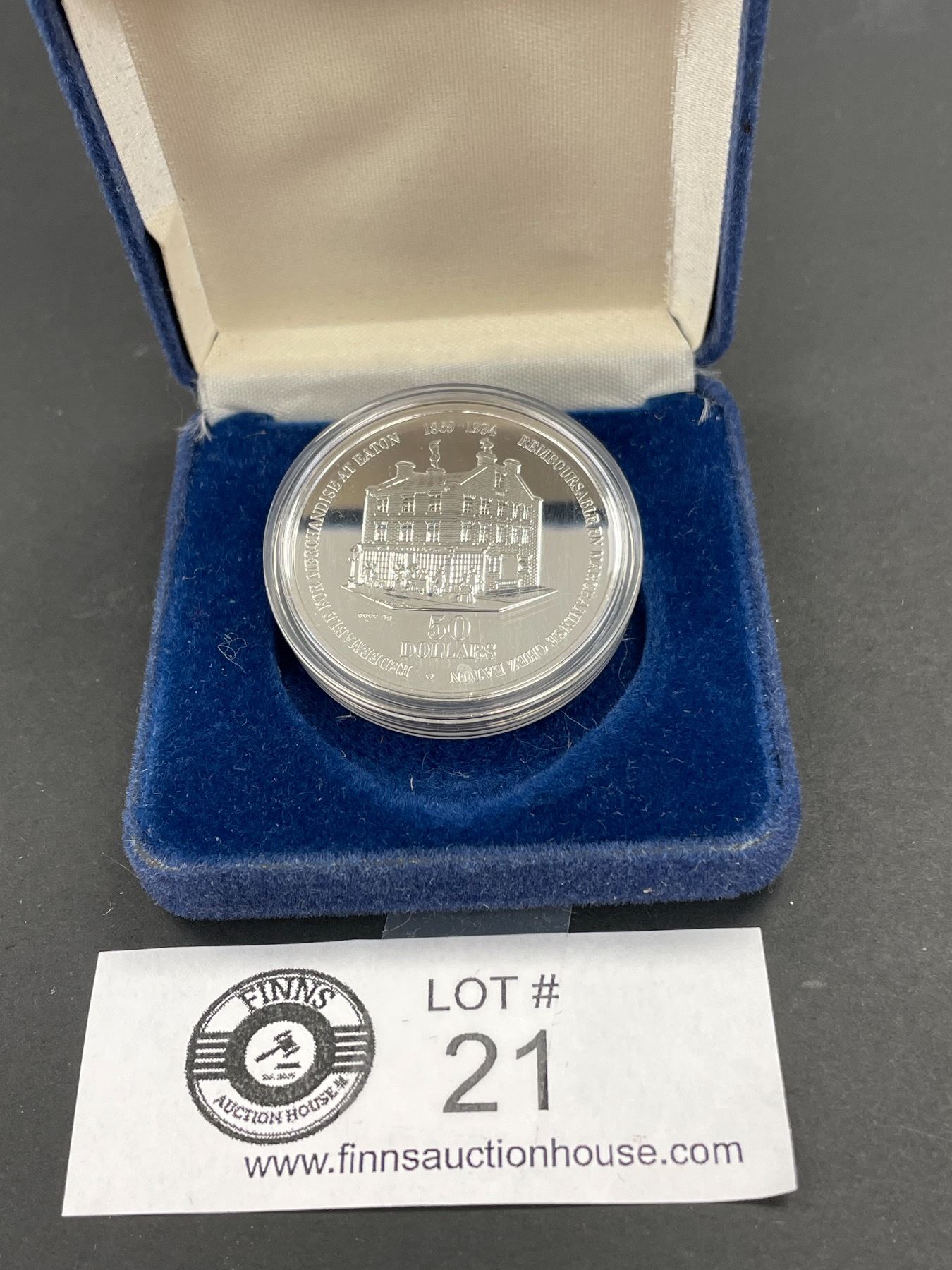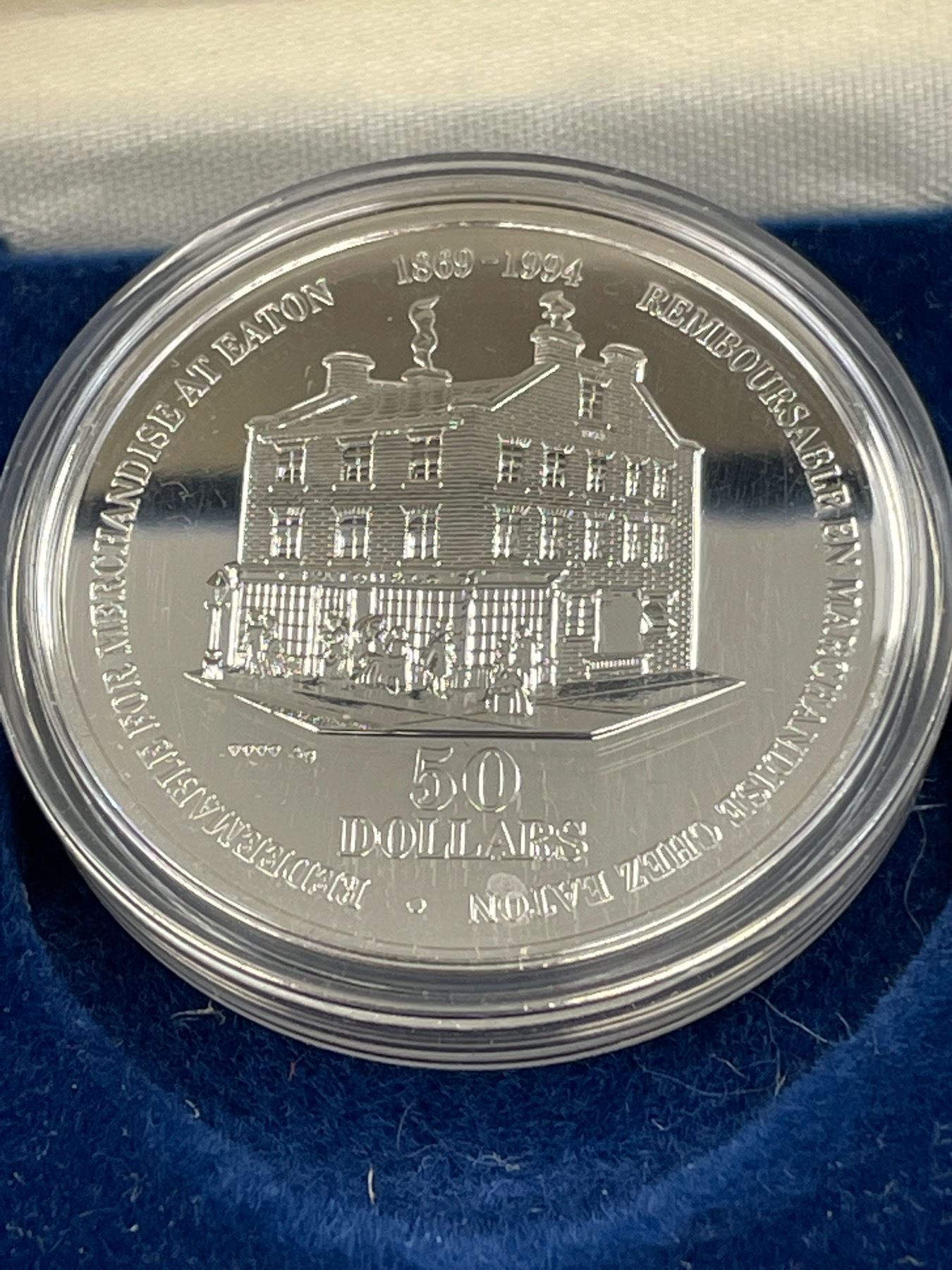 Timothy Eaton 125 Year Anniversary 50 Dollar Silver Coin in Original Case
