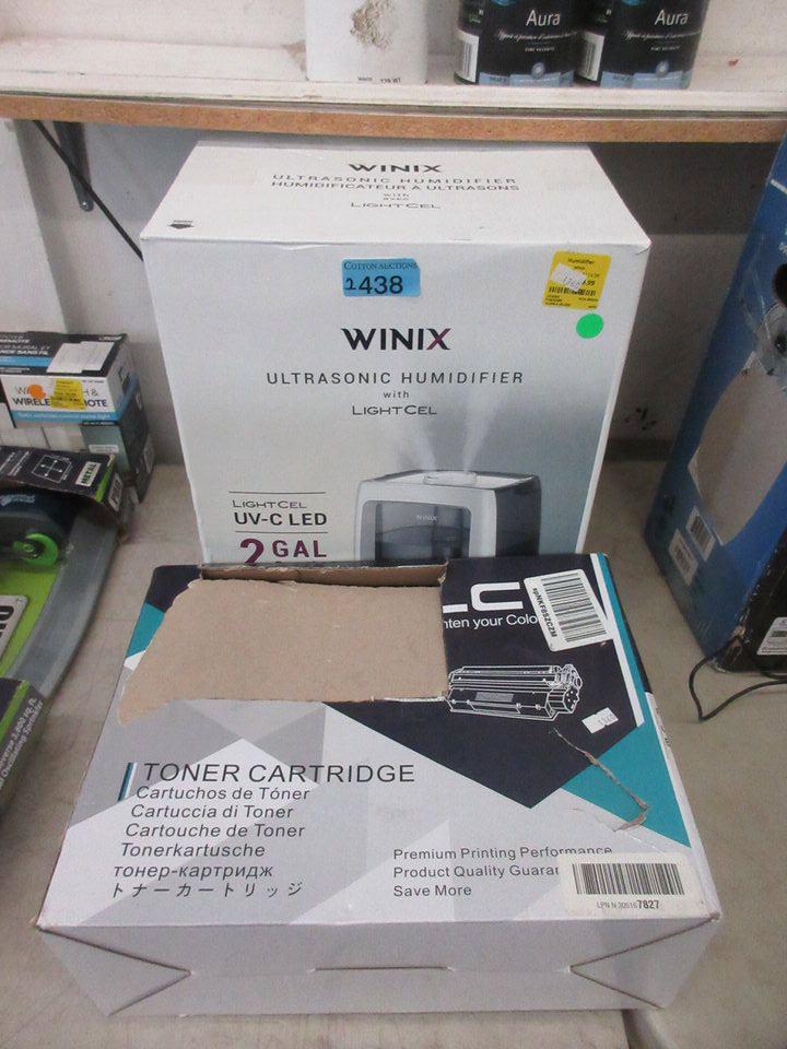 2 Gal LightCel UV-C LED humidifier. LCL Laser toner cartridge. Customer returns. As Is.
