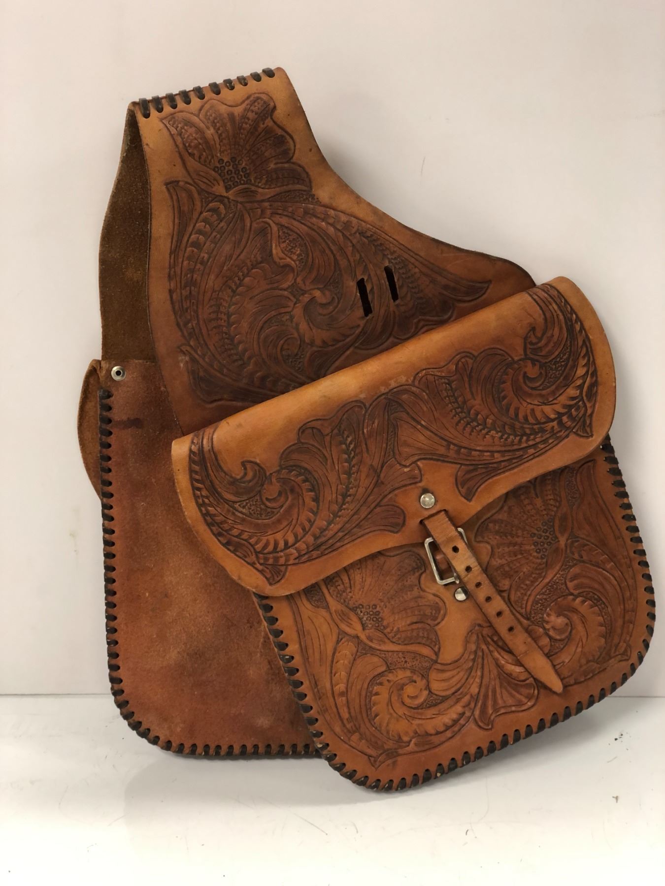 Tooled leather saddle bags