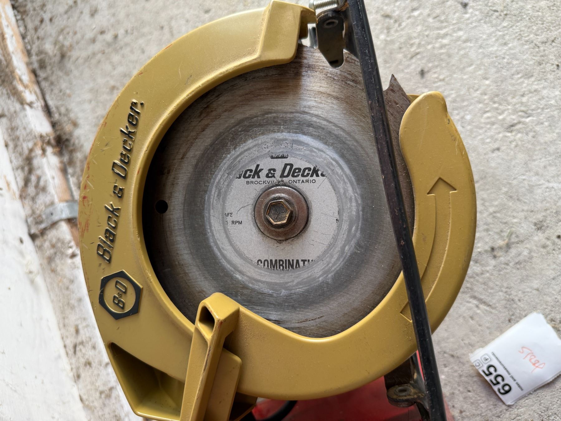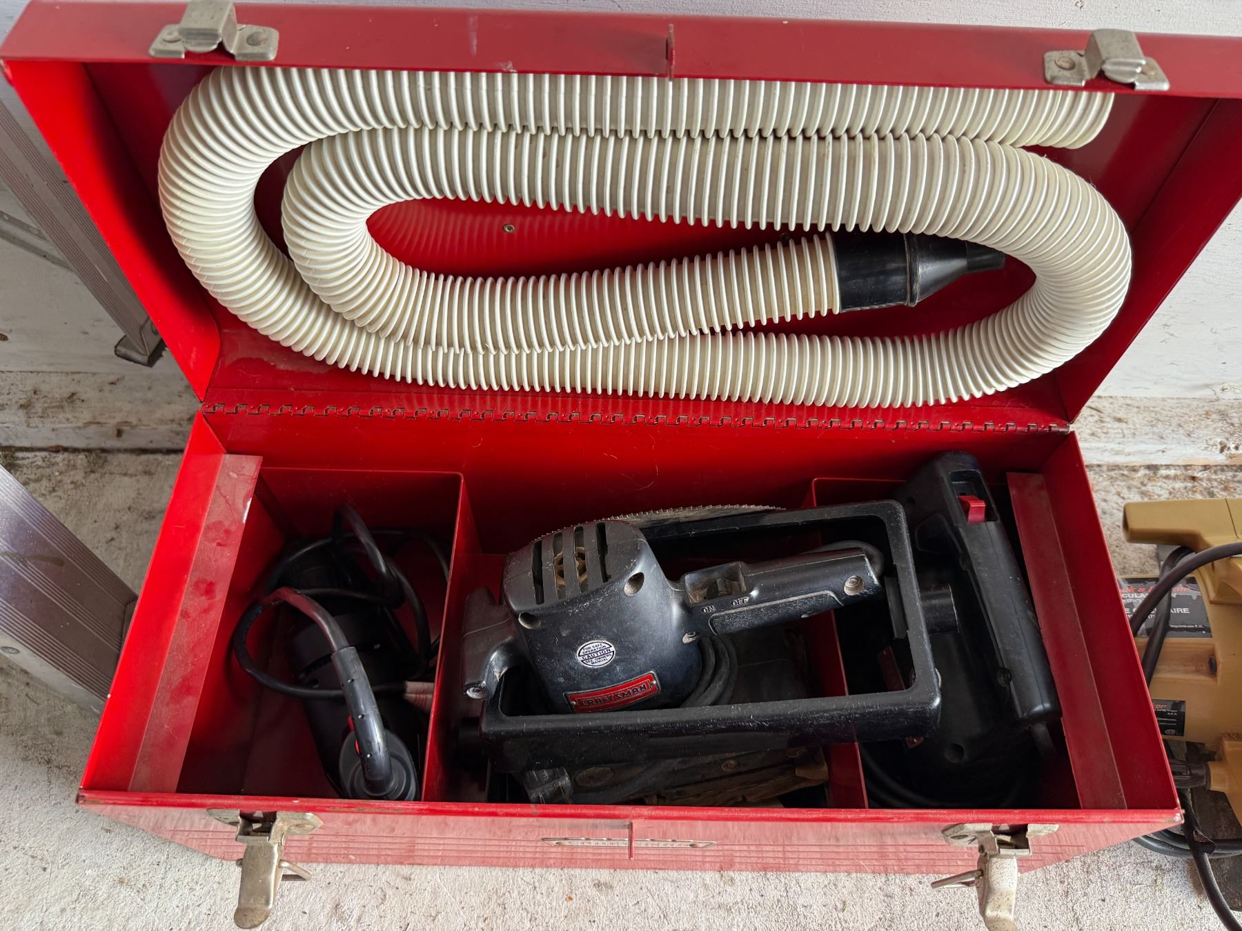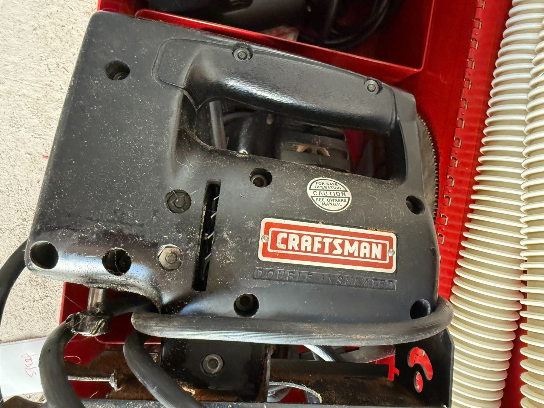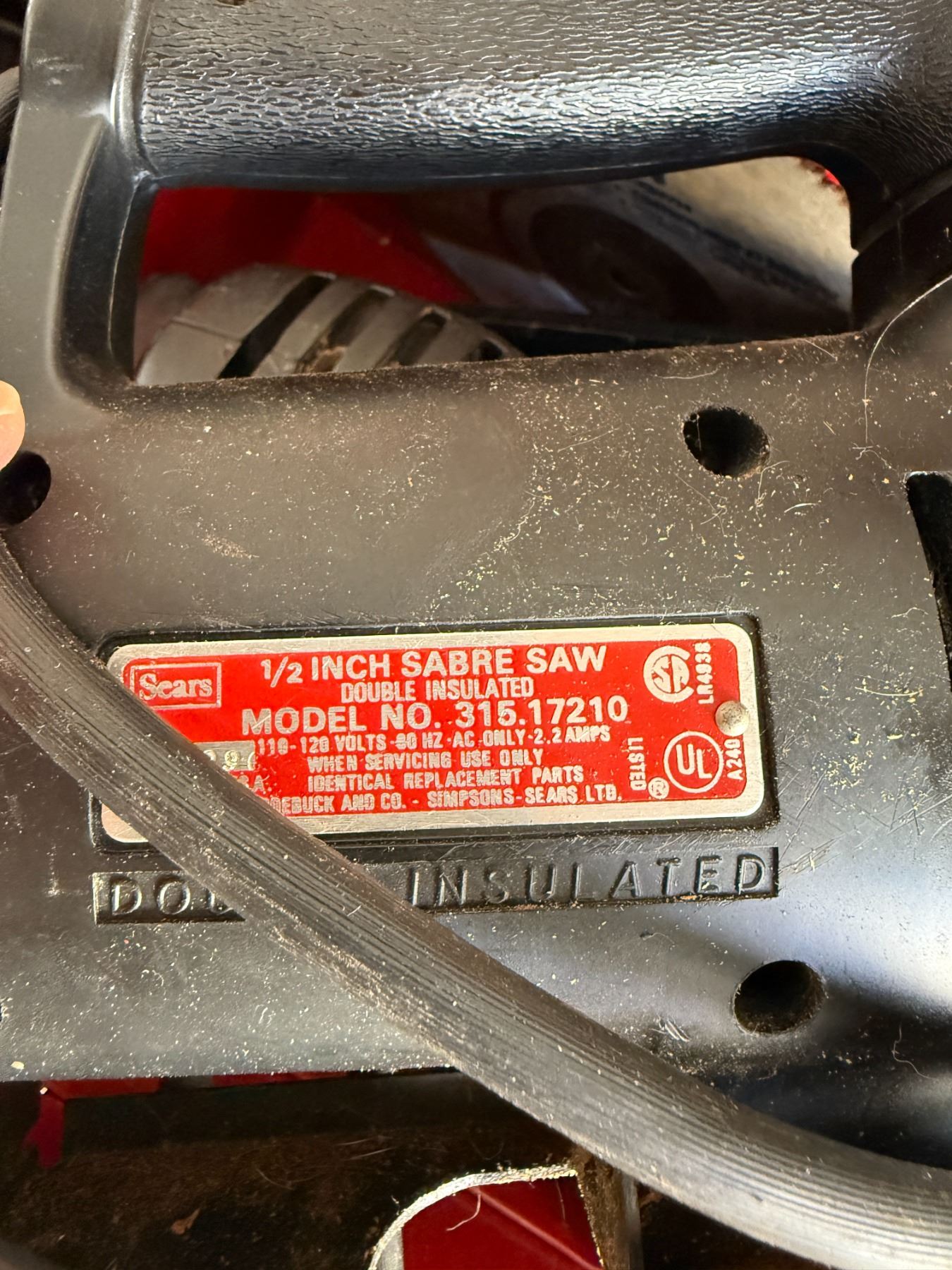 Craftsman metal toolbox, Skil 3.5A drill, Craftsman 1/2" saber saw, Black & Decker circular saw. All untested. As is. In garage.