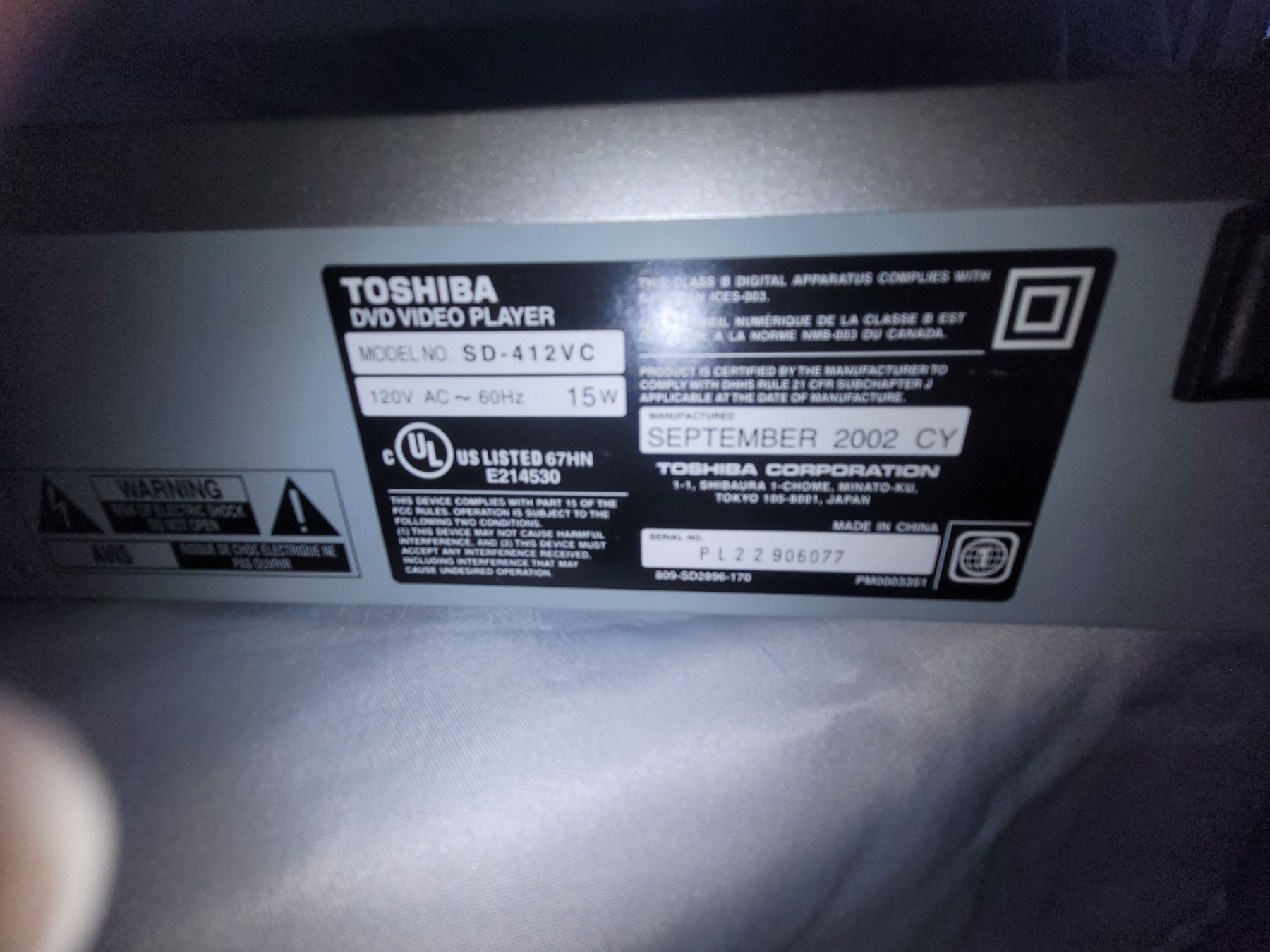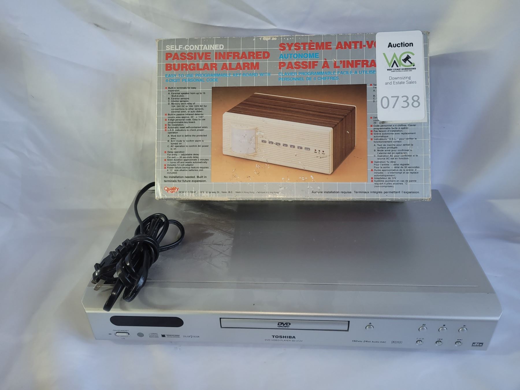 Passive Infrared burglar alarm and Toshiba DVD player model SD-412 VC Pickup at 9 am