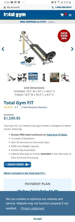Total Gym workout bench retail $1600 on sale