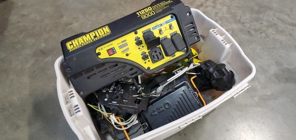 Tote of generator parts