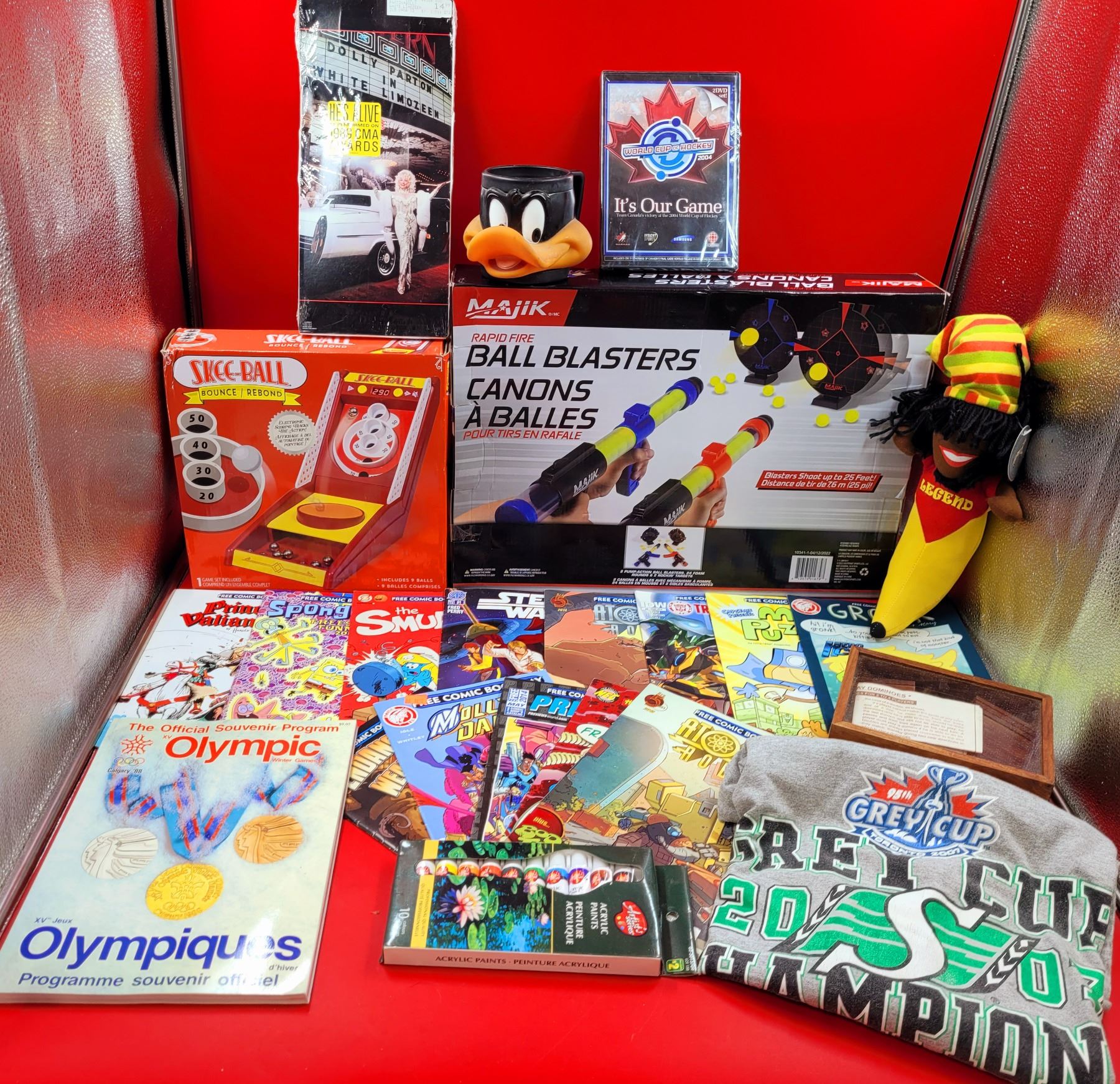 Toy & Comic Lot w/ Ball Blasters, Skee-Ball Game, Assorted Comics, Acrylic Paints, & More