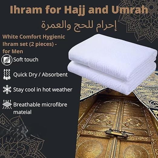 - Designed for Hajj & Umrah – Traditional ihram set for men, following Islamic requirements, perfect for pilgrimage in Makkah and Madinah.