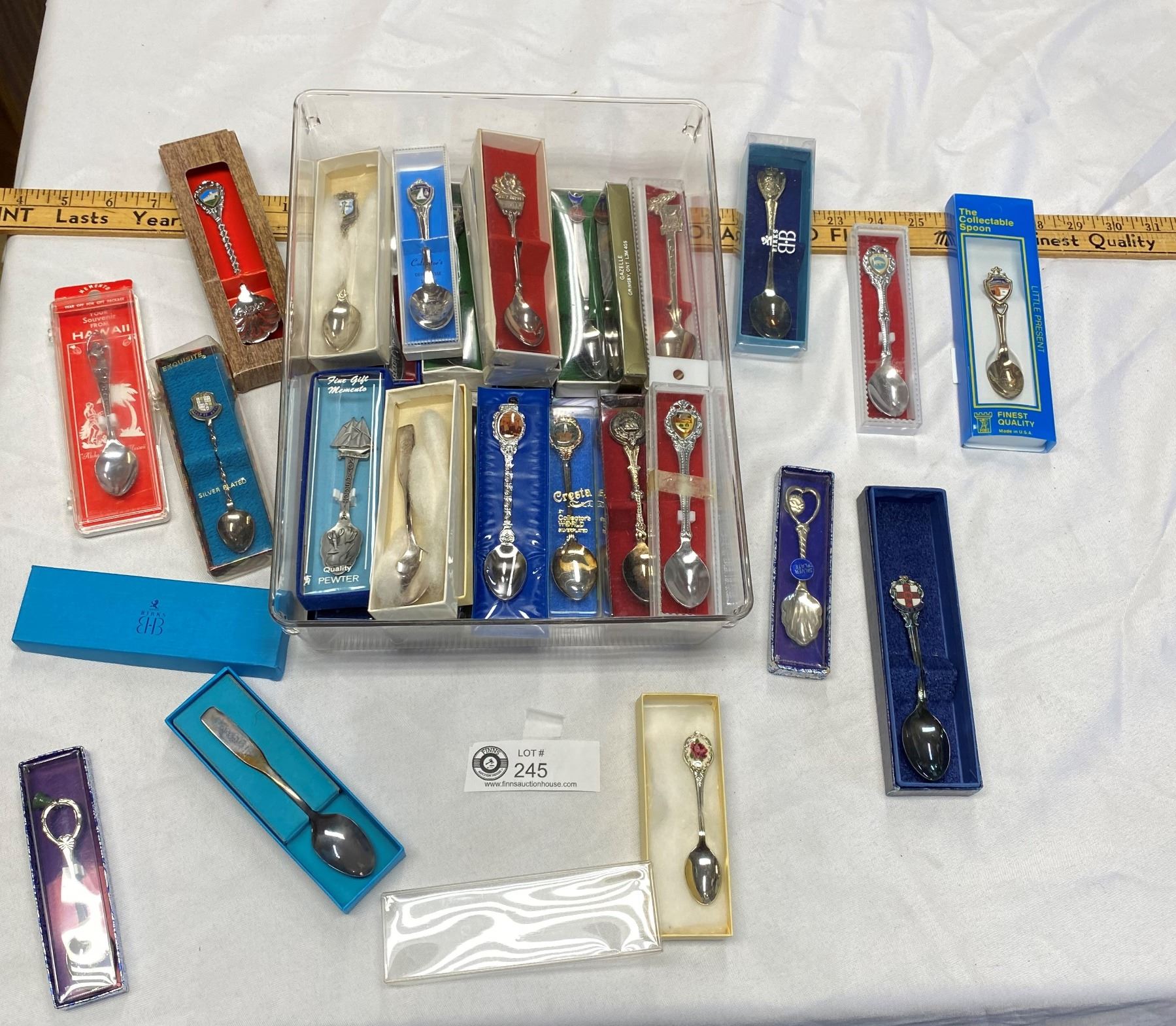 Tray Lot of 30+ Souvenir Spoons in Boxes