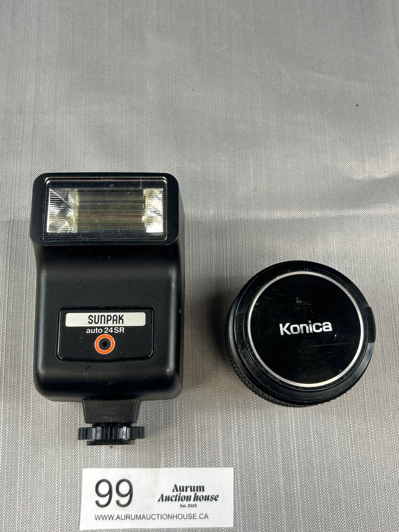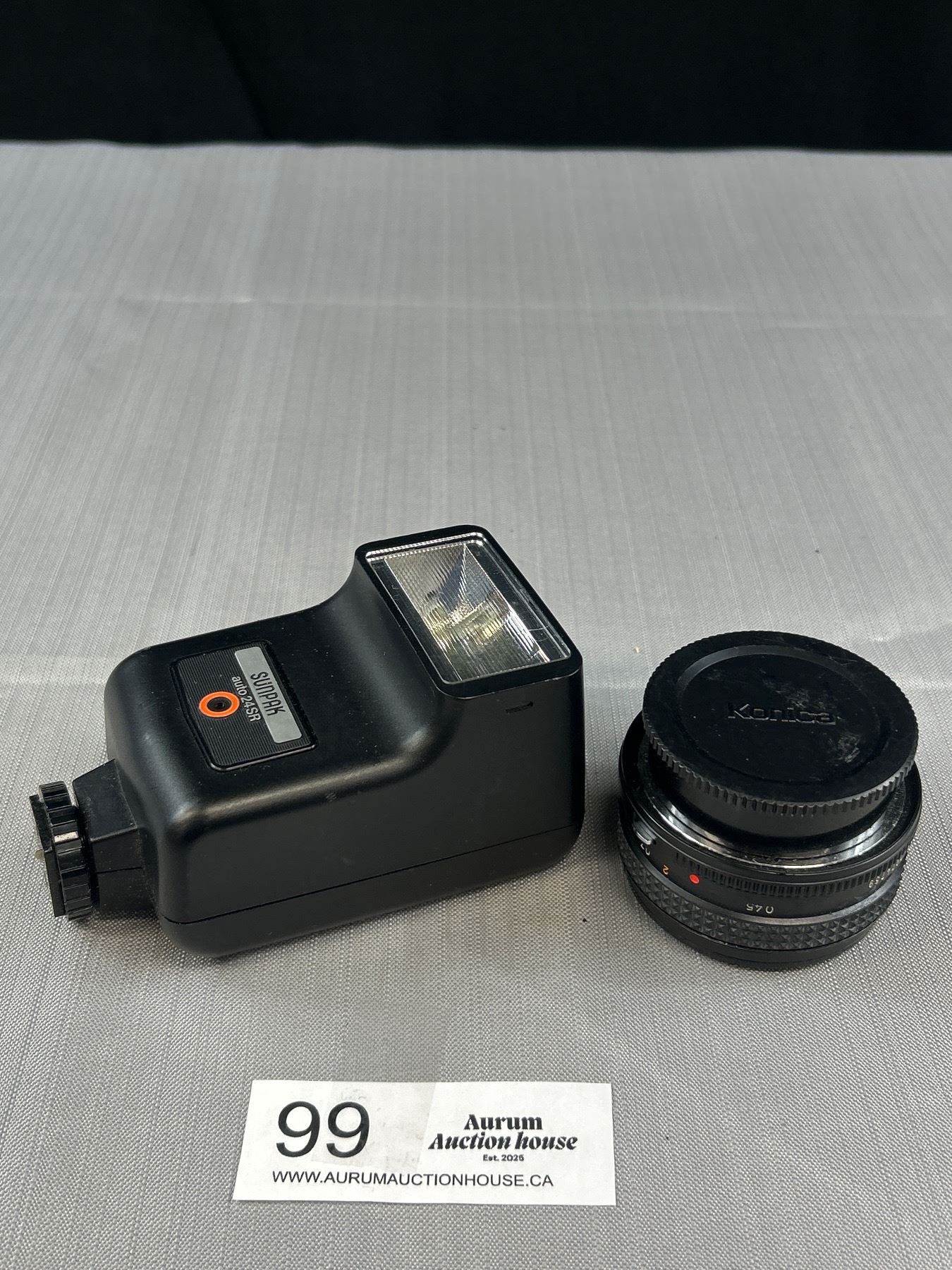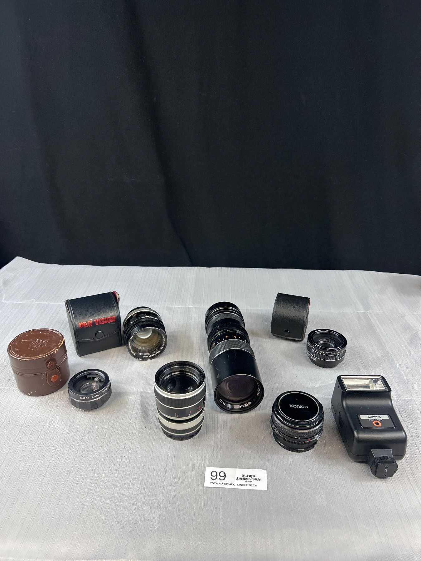 Tray Lot of Vintage Camera Lens, Flashes, etc