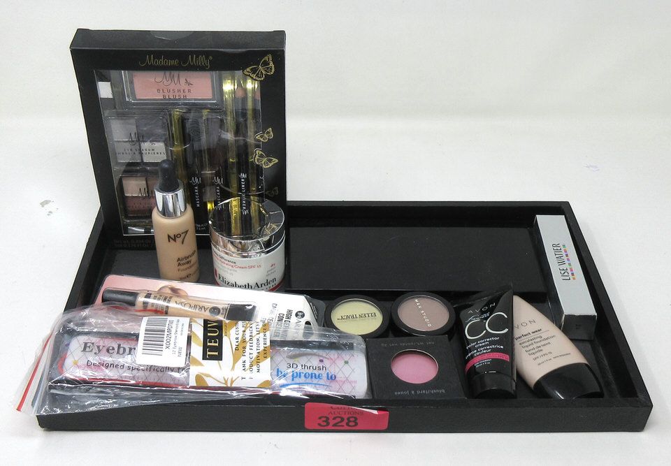 Eyeshadows, foundation, eyebrow stencil kit, mascara, and more.