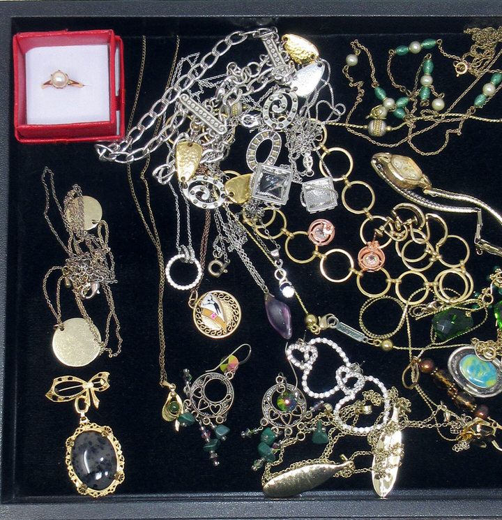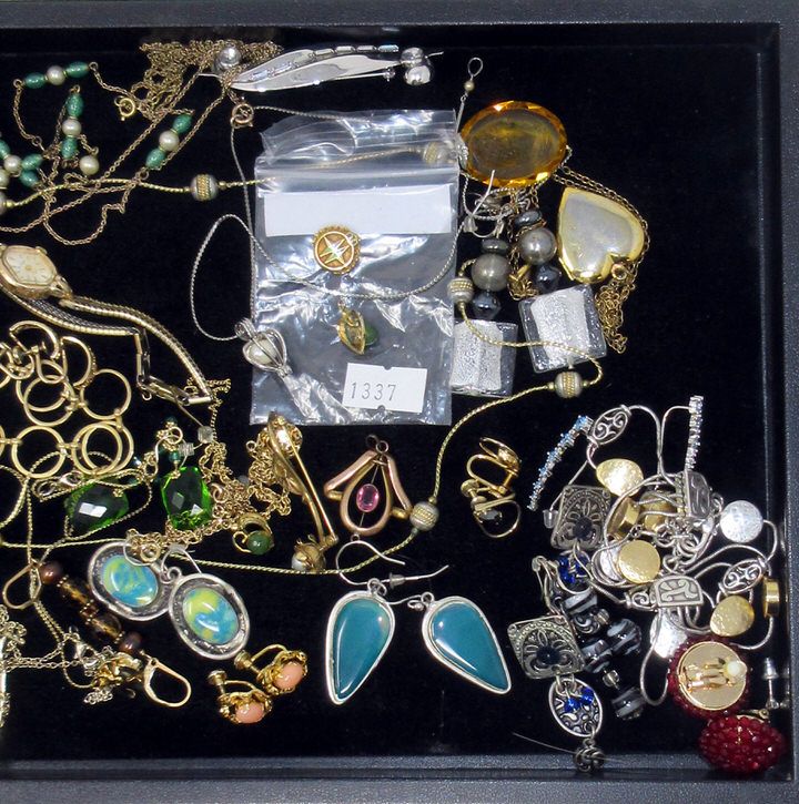 Includes a sterling silver with rhinestone Bond Boyd brooch, Gold Filled, Sterling & Other Jewelry.
