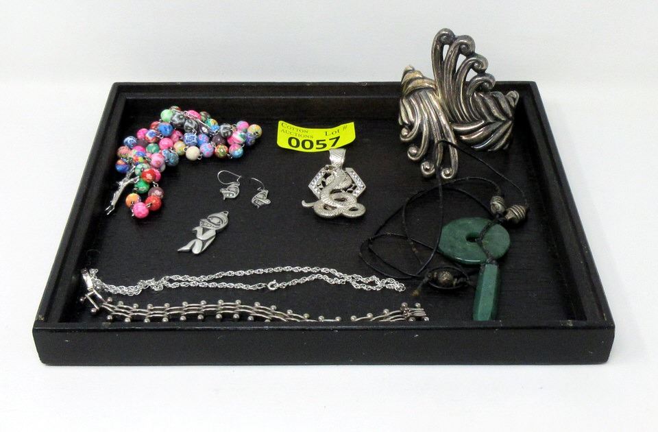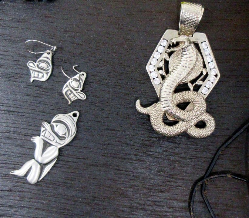 Jade necklace, Mexican .925 cuff bracelet, pewter First Nations jewelry, Large Cobra Pendant with Crystals (1.5" x 2") and .925 bracelet.