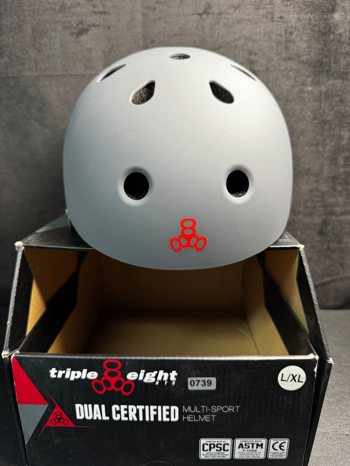 Triple Eight Premium Dual Certified Multi Sport Helmet - Grey - Size L/XL - New