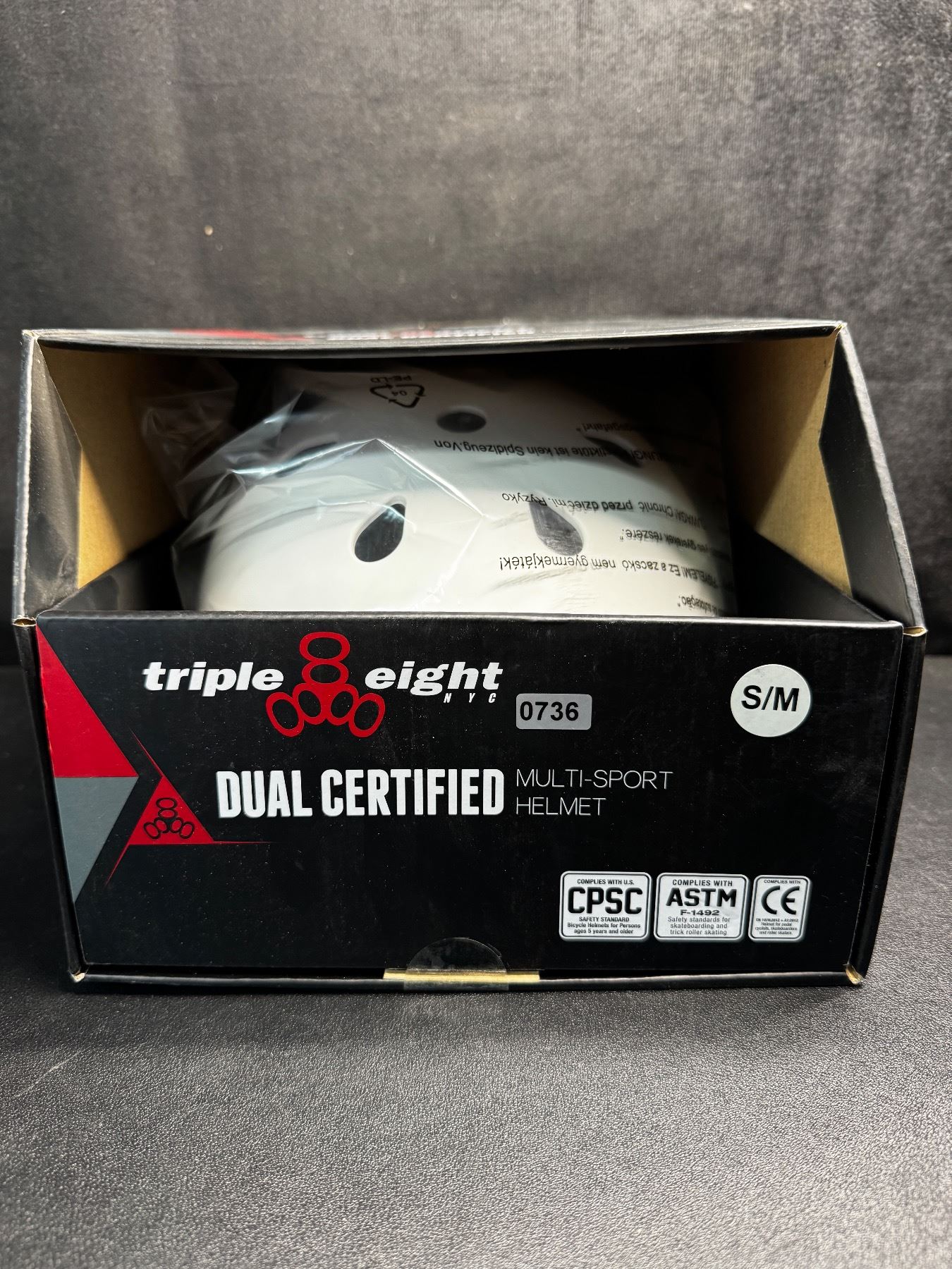 Triple Eight Premium Dual Certified Multi Sport Helmet - White - Size S/M - New