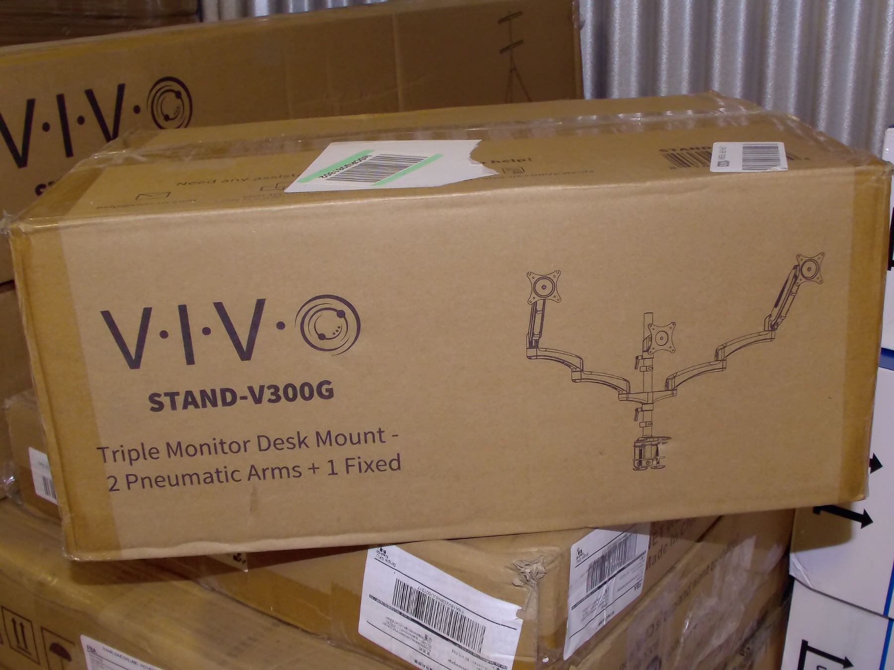 Triple Monitor Desk Mount (2 Pneumatic Arms + 1 Fixed) - V300G
