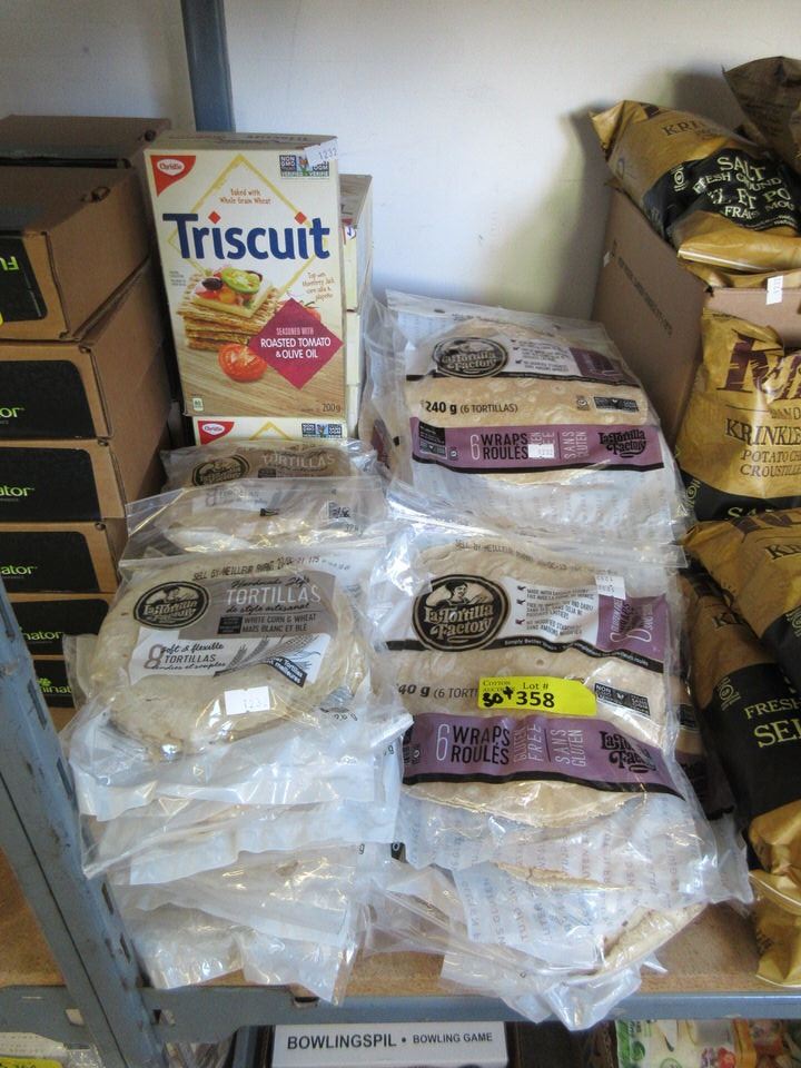 30+ Piece lot. Assorted flavours of Triscuits crackers (BB Unknown), white corn & wheat soft tortillas (BB Oct 2020) & gluten fee tortilla wraps (BB Oct 2020).