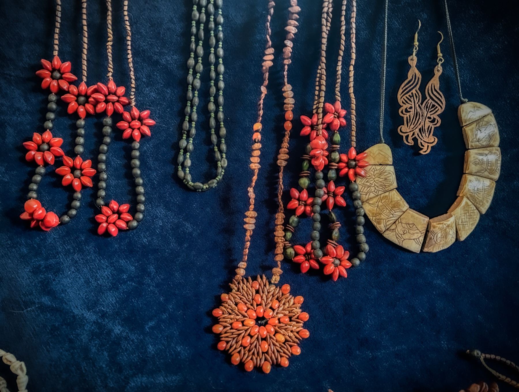 Tropical Tiki Style Vintage Seed Jewelry Lot – Apple Seed, Shell, carved Horn & Wood